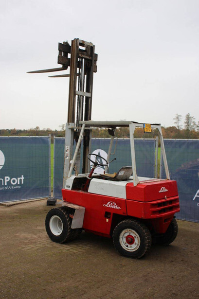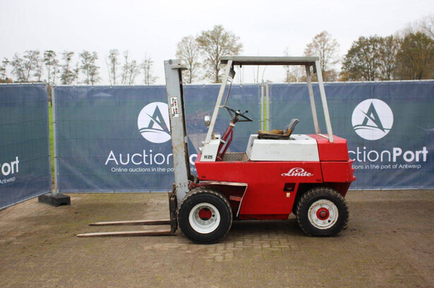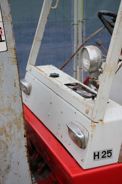 Brand: Linde Type: H25D Year of construction: 1974 Fuel: Diesel Mast type: Duplex Sideshift: No Lifting capacity: 2500 kg Operating hours read: 7686 h Tires: Pneumatic tires Color: red
