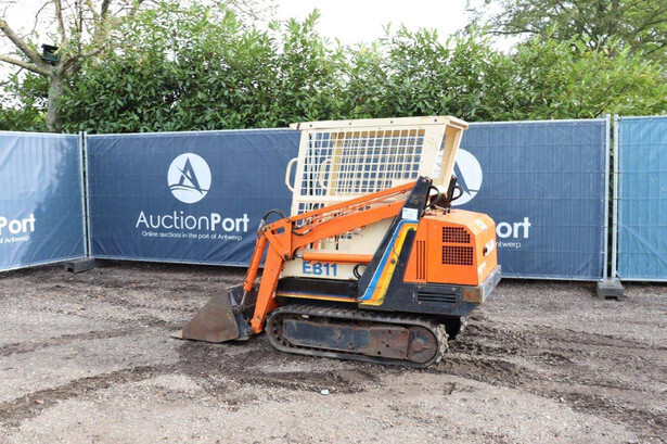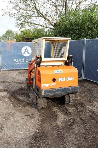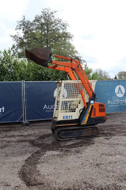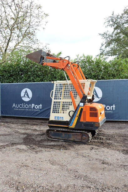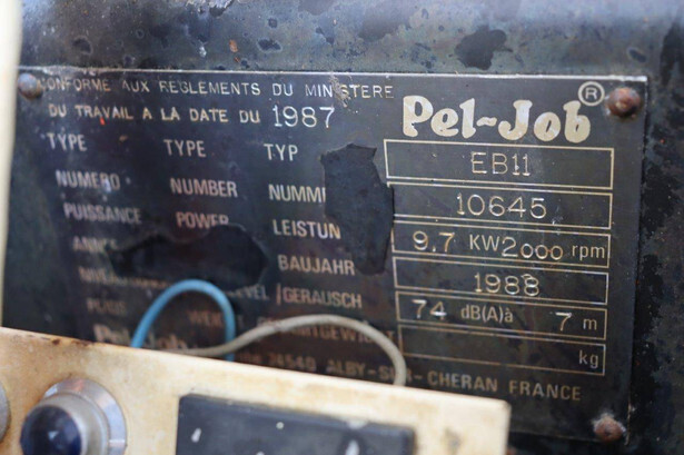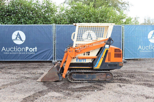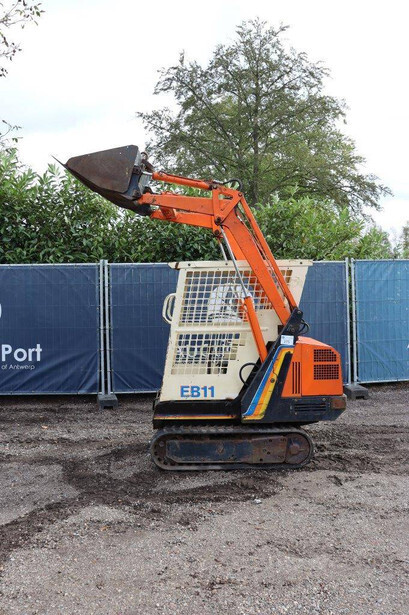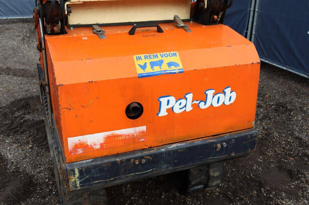 Brand: Peljob Type: EB11 Serial number: 10645 Year of construction: 1988 Fuel: Diesel Motor power: 10 kW Quick change: Not known Recorded operating hours: 1636 h Undercarriage: Tracks Machine own weight: Not known Color: orange Options: Front loader Machine description: The machine starts, drives, and performs all functions.