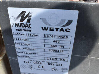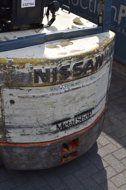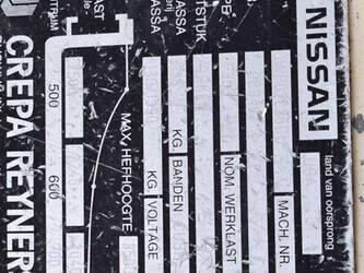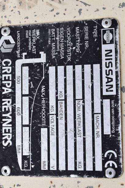 Brand: Nissan Type: CWP02L25CU Serial number: E-9C0487 Year of construction: 1997 Fuel: Electric Mast type: Duplex Sideshift: No Lifting capacity: 2500 kg Lifting height: 3500 mm Operating hours read: 11620 h Machine weight: 4525 kg Tires: Non-marking tires Color: red