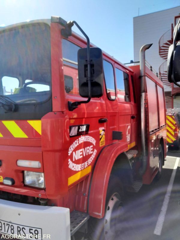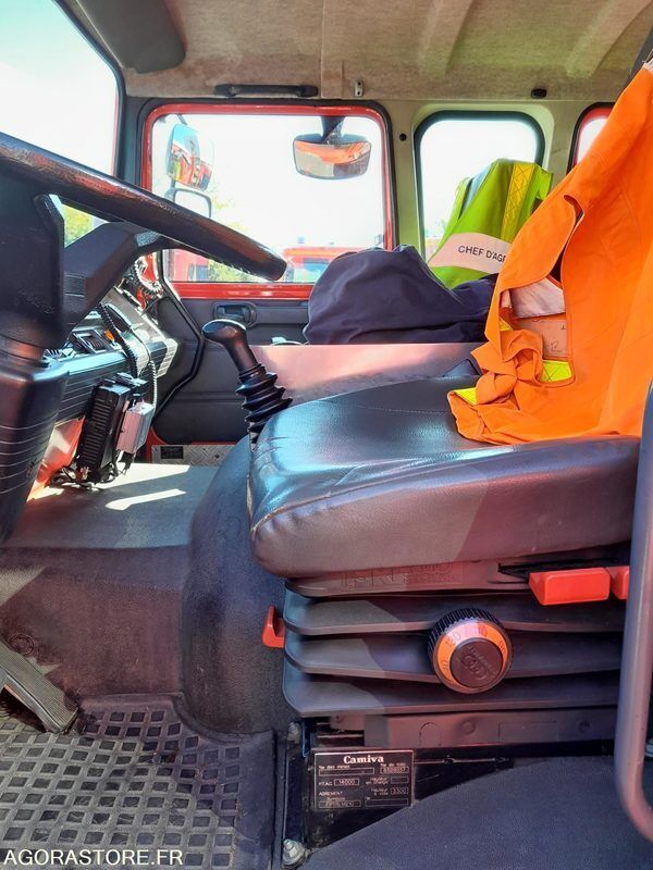 Renault M210 Color: red Engine volume: 6174 Fuel: gas Axle number: 2 Axle suspension: spring/spring Axle 1 common tyre size: 10 R22.5 Gearbox type: manual Overall height: 3.2 Overall length: 7.48 Overall width: 2.45 FR: Type de véhicule FPTHR Camiva sur châssis RVI M210 Date et lieu de visite: du 12 au 26 janvier 2026, rue du Colonel Rimailho 58640 Varennes Vauzelles Etat carrosserie: corrosion de surface à la jonction des rideaux latéraux et des panneaux de carrosserie Etat intérieur: Bon état Etat des pneus: 50% d'usure Climatisation: NON Version: 14T PV / PTAC / PTRA: 7.390 / 14000 / 17500 Etat moteur boite pont: Moteur et transmission RAS. Prévoir réparation pompe incendie (roulement de palier HS) Webasto: NON Dernier passage aux mines: 20/01/2025 Ad Blue: SANS Date du passage limiteur: SANS Date du passage tachy: Non soumis Treuil AV hydraulique pompe incendie attelage arrière dispositif électrique de limitation de vitesse à 90KM/H suite rappel constructeur en 2001 FPTHR carrossé par CAMIVA sur châssis RVI M210 jumelé cabine 6 places citerne incendie 3000 litres et pompe incendie 2000/15. Equipé d'un treuil AV avec entrainement hydraulique (prévoir réfection de la pompe incendie (roulement de palier HS) Ref No:VF48875 VIN: VF640BCA000001292