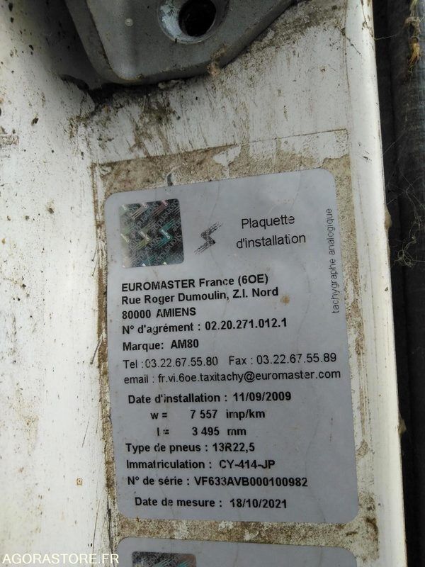 Renault KERAX Color: white Power: 30 Fuel: gas Axle number: 2 Axle suspension: spring/spring Axle 1 common tyre size: 13 R22,5 Gearbox type: manual FR: Type de véhicule AMPLIROLL Etat carrosserie: Moyen Etat intérieur: Moyen Etat des pneus: Usagé Climatisation: Non PV / PTAC / PTRA: 9,82 / 19 / 44 Etat moteur boite pont: Moyen Dernier passage aux mines: 19/10/2021 Ad Blue: Non Date du passage limiteur: 18/10/2021 Date du passage tachy: 19/10/2019 Bras Guima Palfinger BG14 Bosse sur haut cabine droit Camion roulant / moteur tournant Ref No:413145 VIN: VF633AVB000100982