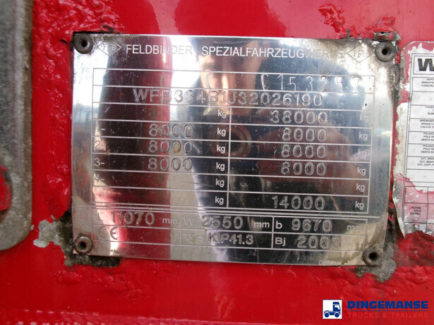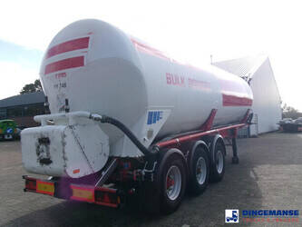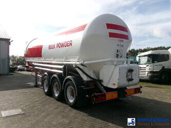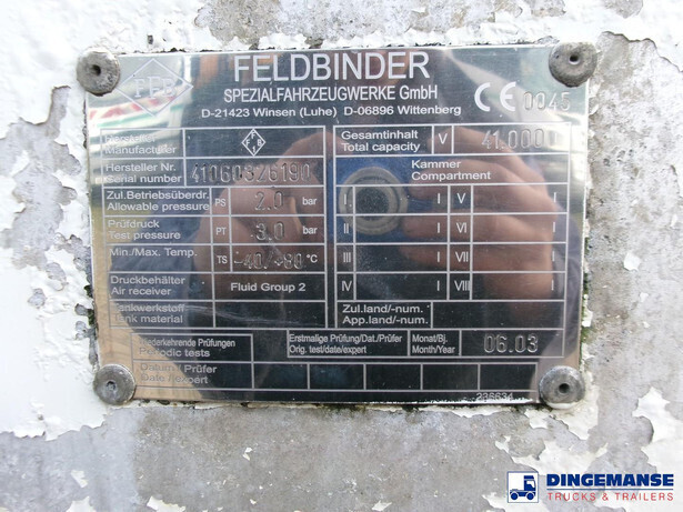 Aluminium tipping powder tank, Capacity 41000 litres, 1 Compartment, Max. working pressure 2.0 bar, Test pressure 3.0 bar, ABS, Air suspension, Drum brakes, BPW Eco Plus axles, Alloy wheels, Shipment dimensions 1120x250x365 cm