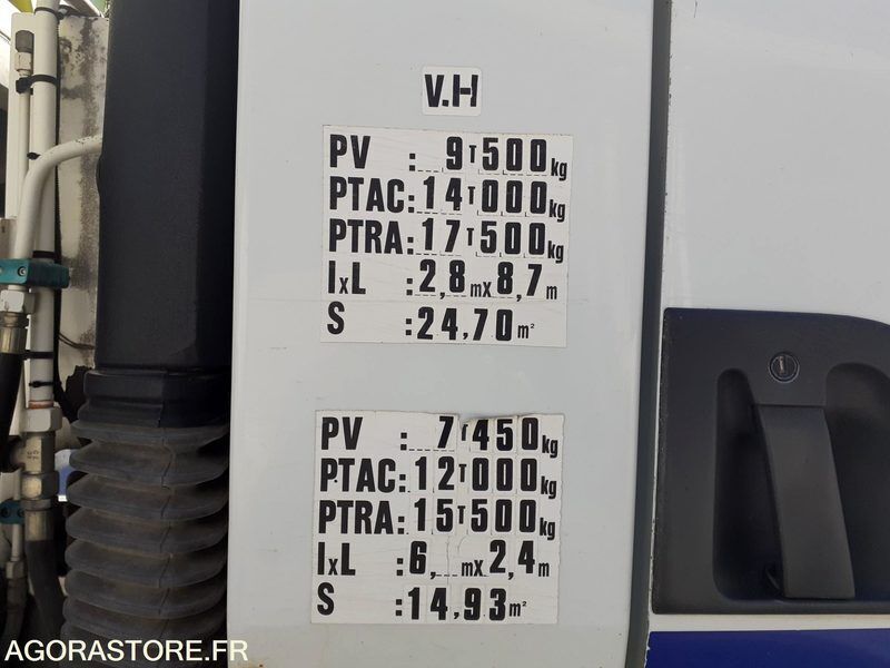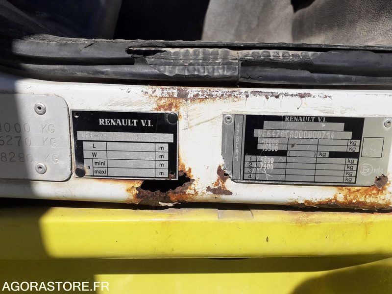 FR: Date et lieu de visite: sur RDV à Carros 06510 Dimensions (Longueur, Largeur, Hauteur): 6m80/2m40/3m25 IMPORTANT: VEHICULE VENDU EN L'ETAT.CHARGEMENT A LA CHARGE DE L'ACQUEREUR Etat carrosserie: satisfaisant Etat intérieur: mauvais Etat des pneus: H.S Climatisation: non PV / PTAC / PTRA: 7t450/12t/15t500 Etat moteur boite pont: bon Webasto: non Dernier passage aux mines: 29/04/2025 Ad Blue: non Date du passage limiteur: 29/04/2025 Date du passage tachy: 29/04/2025 le véhicule démarre avec les câbles batteries à remplacer les freins fonctionnent les vitesses passent pneus arrière droit à remplacer
