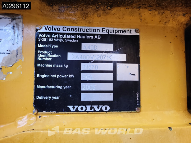 احصل على تقرير فحص مفصل لـ 2005 فولفو A40D واشتري المعدات براحة بال تامة.