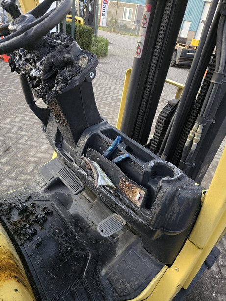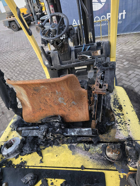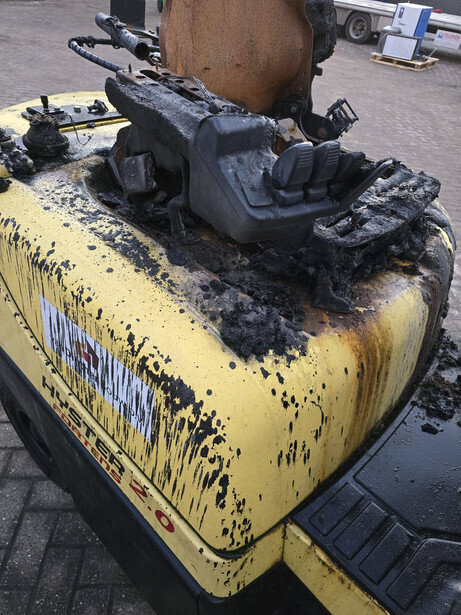 The machine is broken down. The forklift is completely burned out.