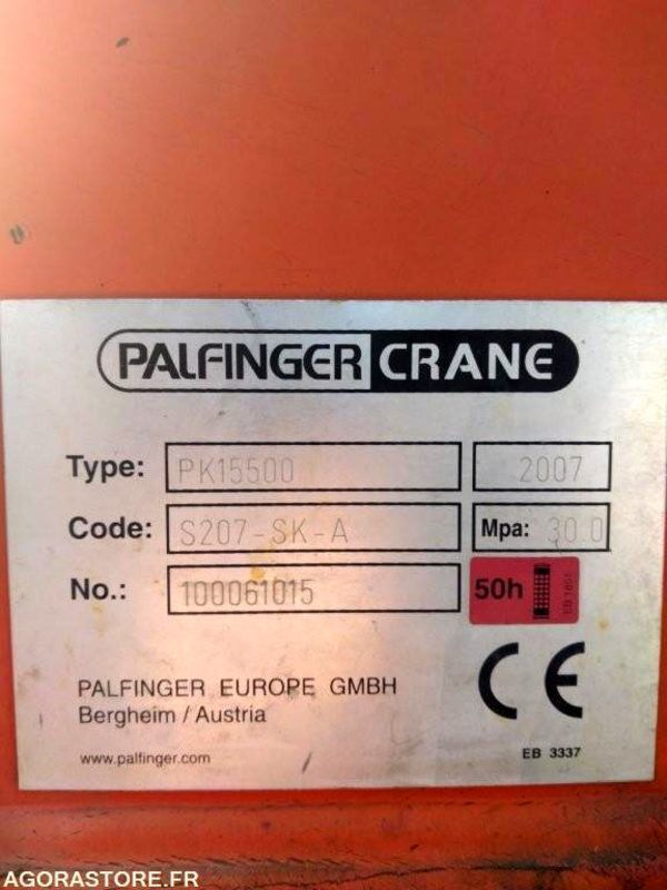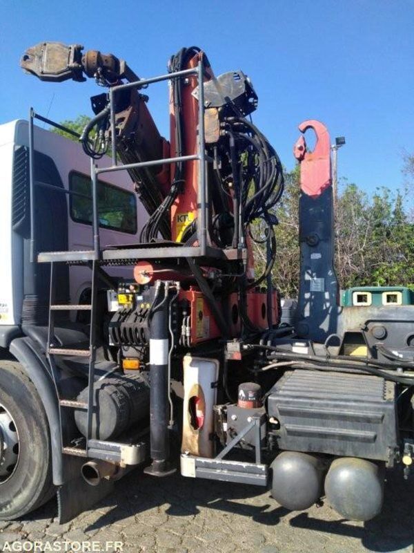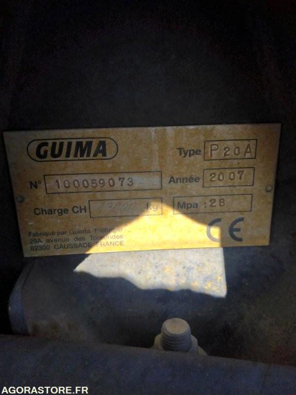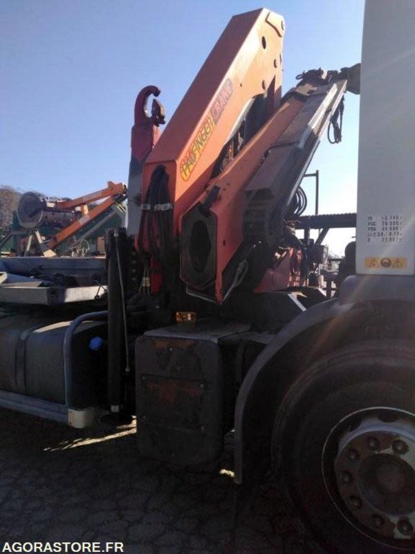 Equipé d'un bras GUIMA P 20A et d'une grue PALFINGERS PK 15500