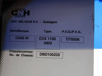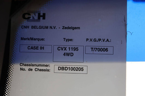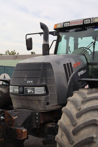 Brand: Steyr Type: 6195CVT Serial number: DBD100205 Year of construction: 2007 Fuel: Diesel Engine power: 196 HP Operating hours read: 12971 h Tires: Pneumatic tires Color: gray