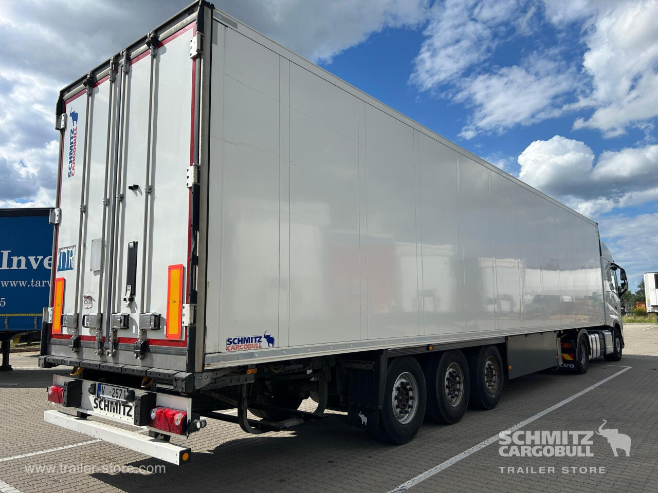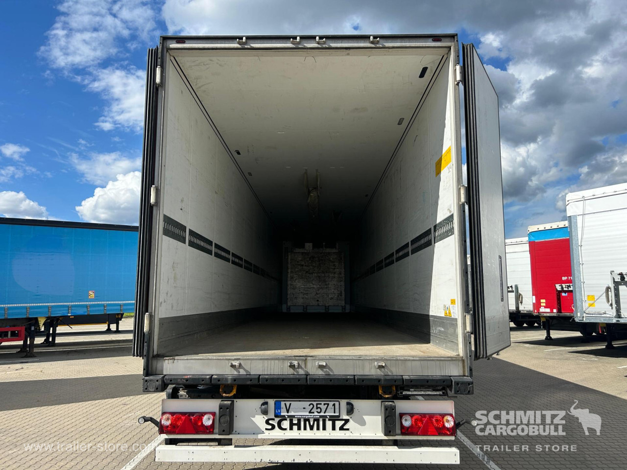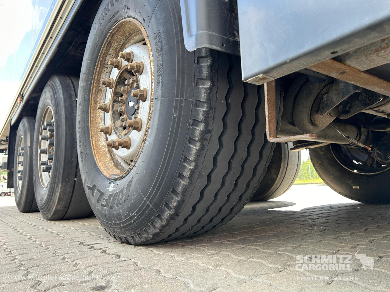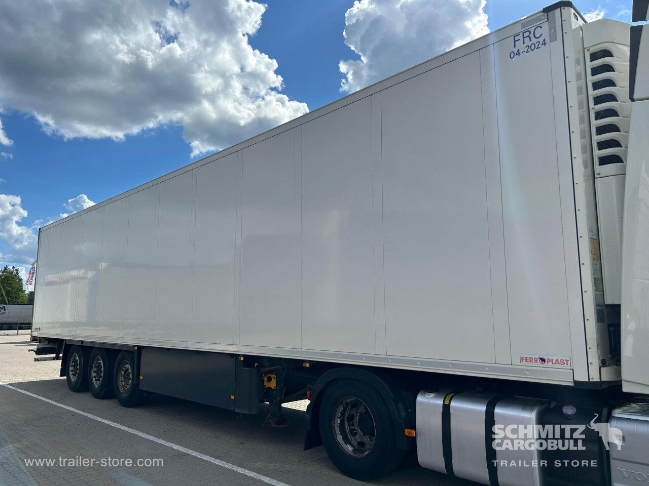 Remarks: **Safety**\\Rear underrun, Antilock Braking System ABS\\\\**Exterior**\\Air suspension, Lift axle, Spare wheel carrier, 1x15 and 2x7 pin plug\\\\**Cargo securing**\\Cargo securing with certificate, DIN EN 12642 (code XL) certificate\\\\**Brake system**\\Drum brake, SAF\\\\**Wall**\\Wall thickness5 mm\\\\**Cooling unit**\\Schmitz Cargobull, Diesel/Elektro, 8.101 Operating hours Diesel, 176 Operating hours electric\\\\**Tyre sizes**\\ 385/65 R22.5 , 385/65 R22.5 , 385/65 R22.5\\\\----