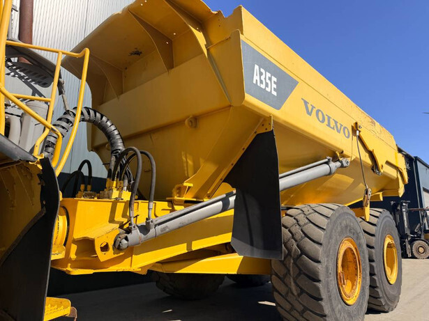 The Volvo A35E is a versatile articulated dumper, well-suited for various heavy-duty tasks. Powered by a Volvo D12D engine with a robust 280kW output, this machine meets Stage IIIA emission standards. Key features include a 6×6 configuration for enhanced mobility, air-conditioned EROPS cabin, and a retarder system for safe and efficient operation. With body extensions and a big tailgate, it offers extensive load capacity. The dumper is equipped with a backup alarm for safety and has genuine operational hours of 13,567, reflecting its reliability and efficiency. It is in good and clean condition, ensuring it is ready for immediate use. Manufactured in 2008, this machine weighs 28,500 kg and measures 11.30 x 3.33 x 3.75 meters, representing a durable and practical solution for any construction site.