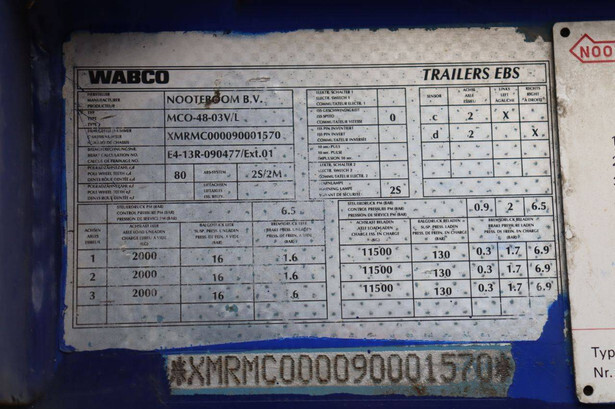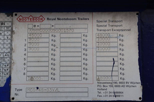 Brand: Nooteboom Type: MCO-48-03V/L Chassis number: XMRMC000090001570 Year of construction: 2009 MTM: 45000 kg Number of axles: 3 Brakes: Drum brakes
