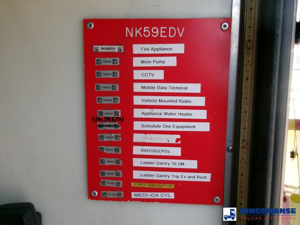 NON DUTY FREE - REQUIRES CUSTOM CLEARANCE, RIGHT-HAND DRIVE // Godina EN1028-1 FPN10-3000 waterpump, Water tank capacity 1800 liters, Preparation for a gantry ladder with a max reach of 10.50 meters available, Hose reels, High pressure lance, Hazard lights and siren controls in cabin, Three seats in the back // Truck 4x2, Euro 5, Adblue, Automatic gearbox, Diff. lock, Steel suspension front, Air suspension rear, Low roof cabin, RIGHT-HAND DRIVE, Shipment dimensions 820x250x350 cm