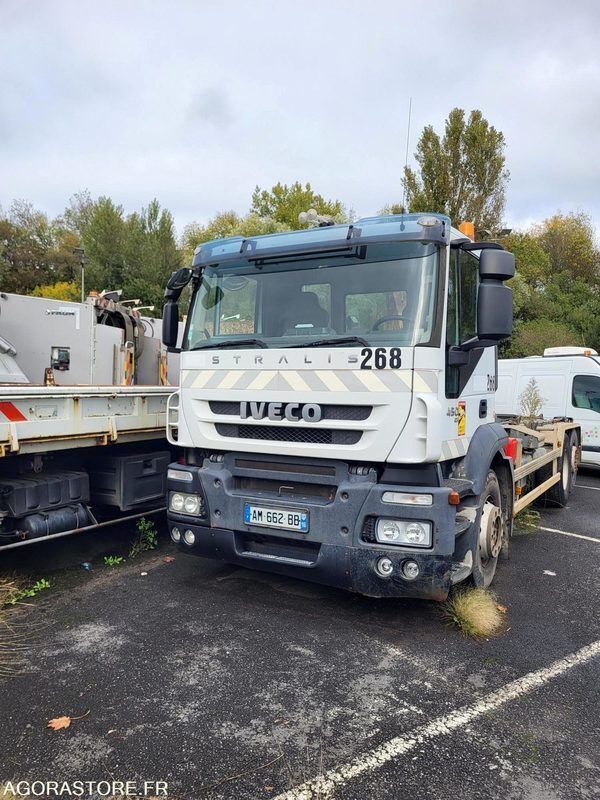 IVECO 260S45 Color: white Power: 450 Engine volume: 10310 Fuel: gas Axle number: 2 Axle suspension: air/air Gearbox type: manual FR: Type de véhicule AMPLIROLL Date et lieu de visite: SUR RDV IMPORTANT: VENDU EN L'ETAT Etat carrosserie: correct Version: Stralis PV / PTAC / PTRA: 11375/26000/40000 Etat moteur boite pont: Moteur, BV, Pont RAS Dernier passage aux mines: 21/02/2024 Ad Blue: oui Date du passage limiteur: 20/02/2024 Date du passage tachy: 20/02/2024 Véhicule roulant PB calculateur ABS Bras de levage fonctionnel Batterie HS Ref No:414243 VIN: WJME2NTH404373173