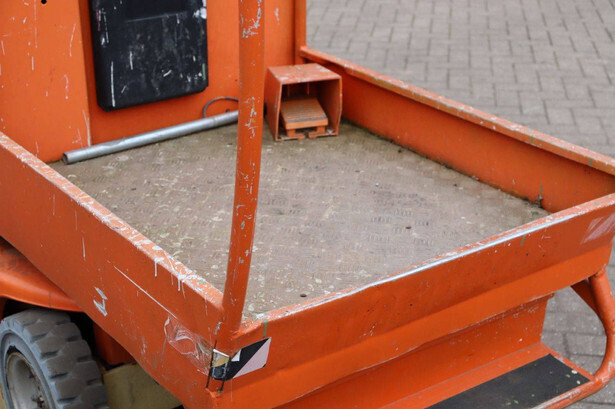 Brand: JLG Type: TOUCAN 800 A Serial number: A300082283 Year of construction: 2010 Fuel: Electric Lifting capacity: 200 kg Working height: 8 m Operating hours read: 1572 h Machine weight: 2400 kg Chassis: Wheels Type: Mast lift Tires: Non-marking tires Color: orange
