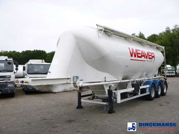 Aluminium powder tank / cement silo, Capacity 43000 litres, 1 Compartment, ABS, Air suspension, ROR axles, Disc brakes, Alloy wheels, Shipment dimensions 1160x250x395 cm.