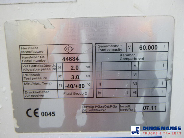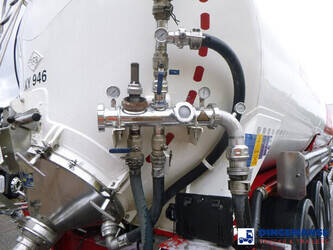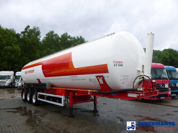 Aluminium powder tank with hydraulic tipping system, Capacity 60000 liters, 1 Compartment, Test pressure 3.0 bar, Max working pressure 2.0 bar, ABS, BPW Eco Plus axles, Drum brakes, Air suspension, 2 support legs at the back, 3rd axle lifting axle, Shipping dimensions: 1300x255x380 cm