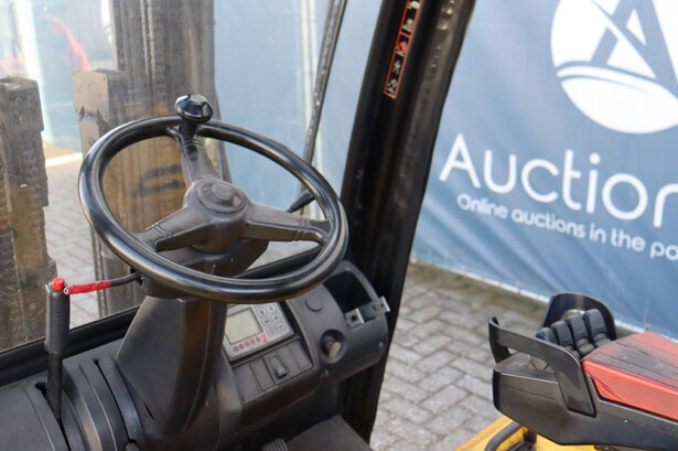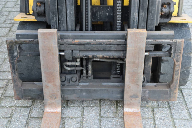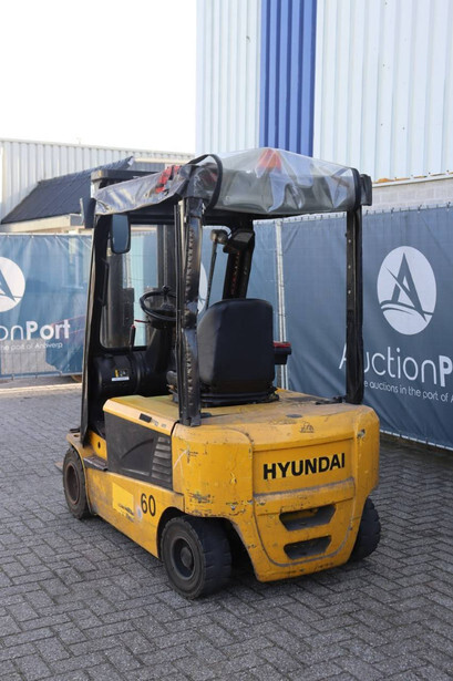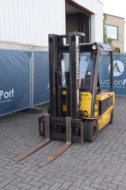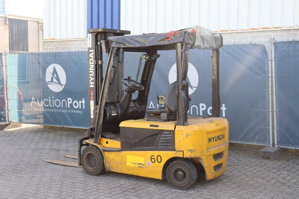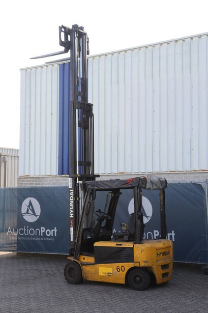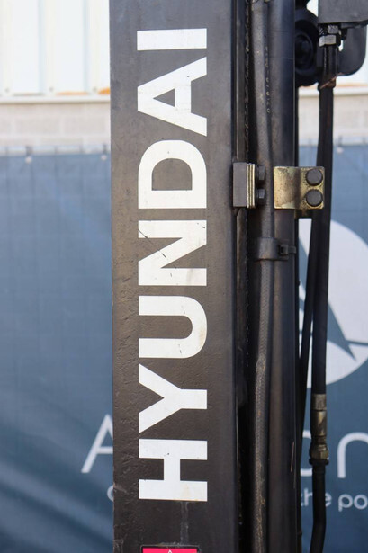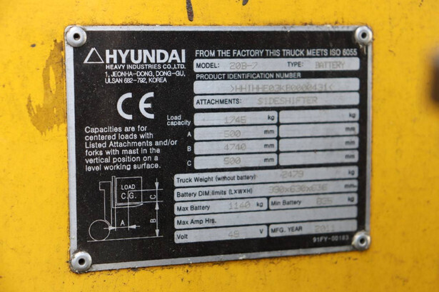 Brand: Hyundai Type: 20B-7 Serial number: HHIHHE03KB0000431 Year of construction: 2011 Fuel: Electric Mast type: Triplex Sideshift: Yes Lifting capacity: 1745 kg Lifting height: 4740 mm Operating hours read: 23663 h Machine weight: 3619 kg Tires: Solid tires Color: yellow