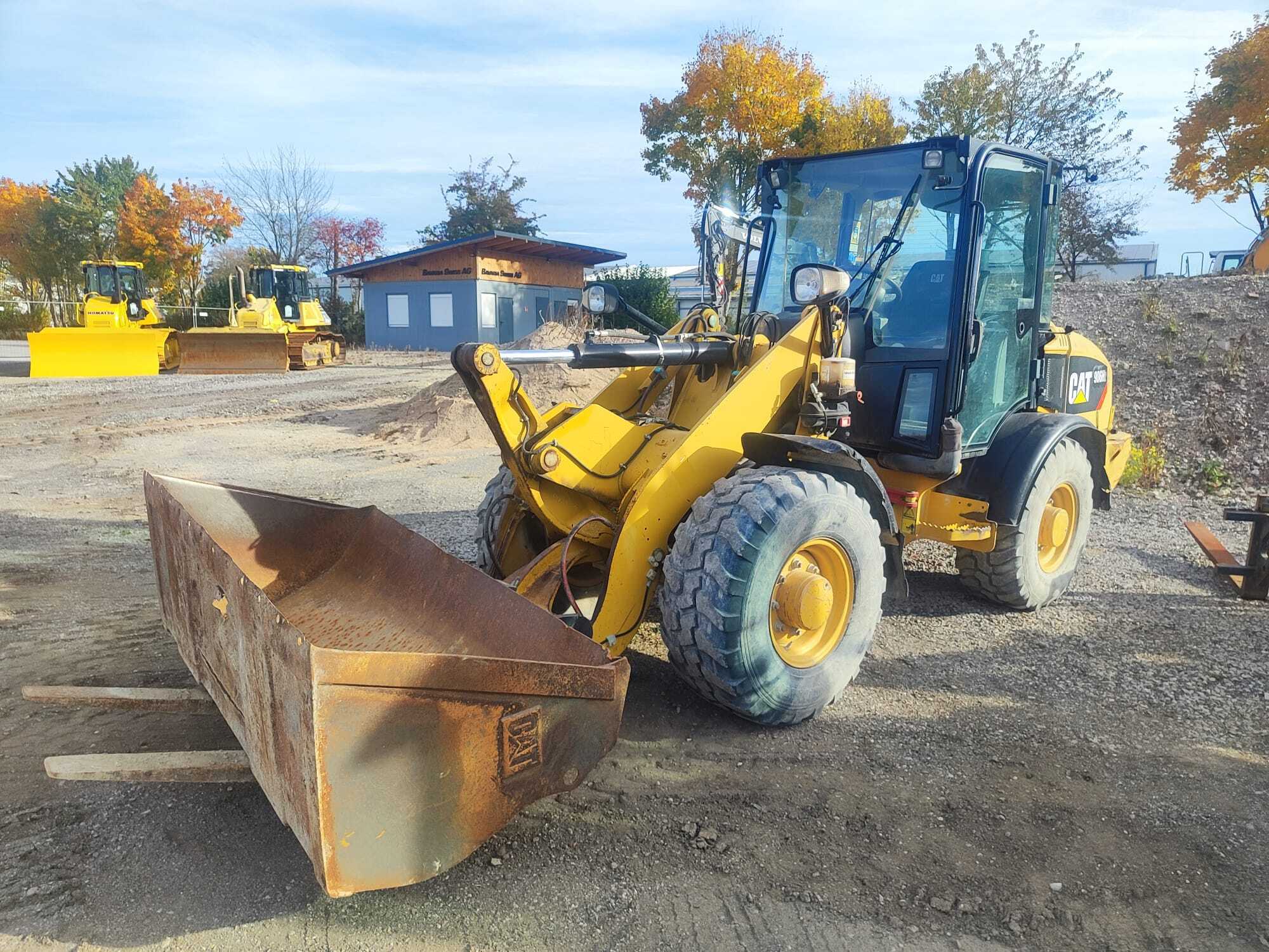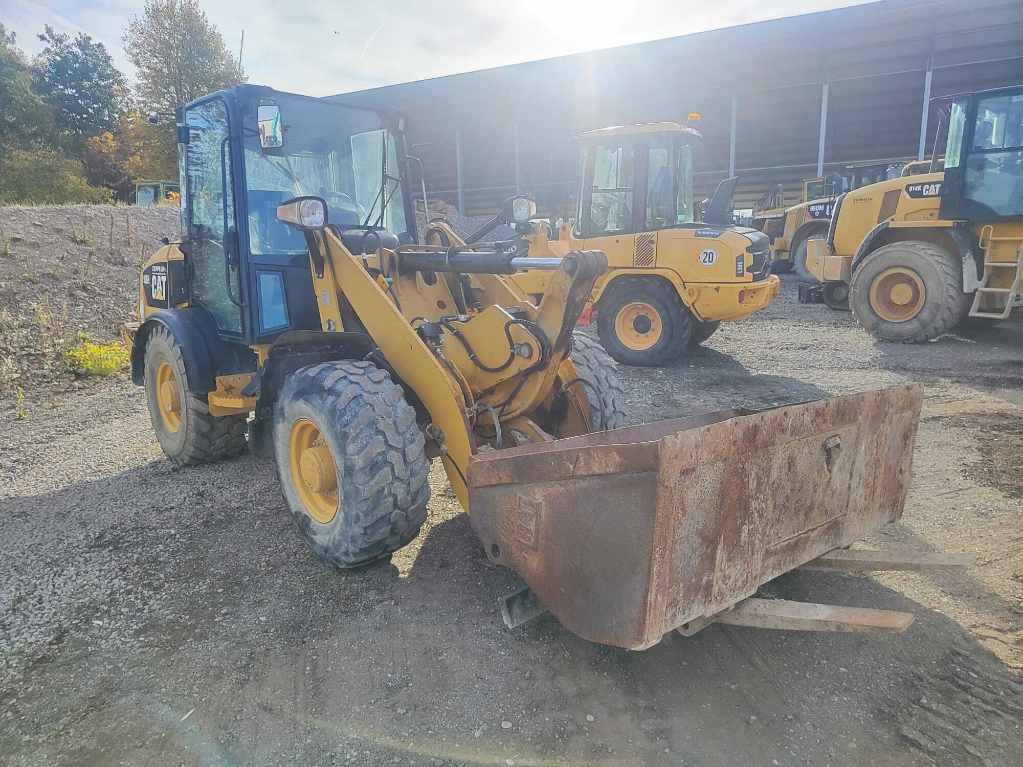 CAT 906H2 Weight around ca 5.600kg Engine / Type CAT C3.3B Power / HP / KW 69 / 51 Emission standard III hydraulic lines 3rd circle Tires / type / size 405/70 R18 *front in % good ca 40% good *back in % good ca 40% good shove (capacity approx. / type) Shovel with cutting edge Quick coupler (brand) CAT quick coupler Central lubrication Central lubrication CE-certificate CE-certified other details Forks