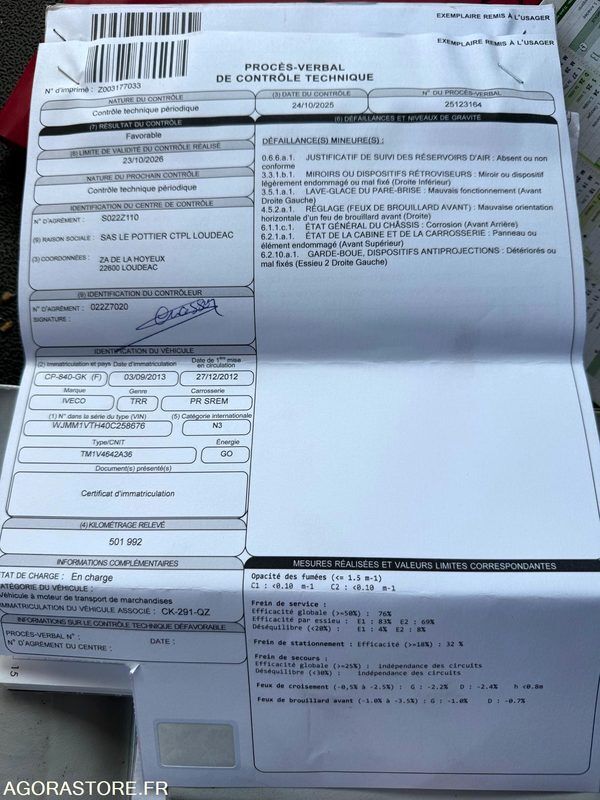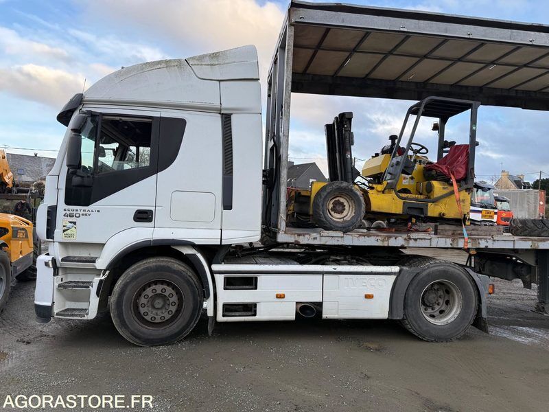 IVECO 440S46 Color: white Power: 460 Fuel: gas Axle number: 2 Axle 1 common tyre size: 315/80R22.5 Conditioner: 1 Gearbox type: automatic FR: Type de véhicule TRACTEUR ROUTIER Date et lieu de visite: sur rdv Etat carrosserie: ok Etat intérieur: ok Etat des pneus: ok Transmission: automatique Etat moteur boite pont: ok Dernier passage aux mines: 23/10/2025 Date du passage limiteur: 23/10/2026 Date du passage tachy: 29/10/2026 groupe Hydraulique IVECO STRALIS 460 - BOITE AUTOMATIQUE - GROUPE HYDRAULIQUE - 505000KM - 2012 (Vendu pour le compte de l'un de nos clients professionnels) Date de 1ére immatriculation : 27/12/2012 Kilométrage : 505 000 KM Boite de vitesse automatique Contrôles périodiques à jours (CT -> 23/10/26 // Tachy -> 29/10/26 // Limiteur -> 23/10/26) Équipements Cabine Siège conducteur suspendu Couchette Équipement Extérieur Groupe Hydraulique Pneumatiques : OK Vendu dans l'état de présentation -- Vendu sans la remorque Ref No:TE48875 VIN: WJMM1VTH40C258676