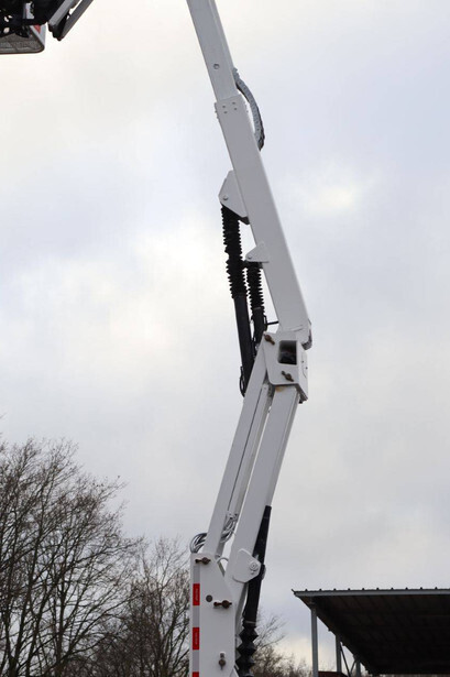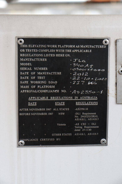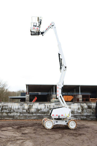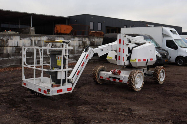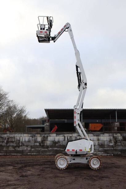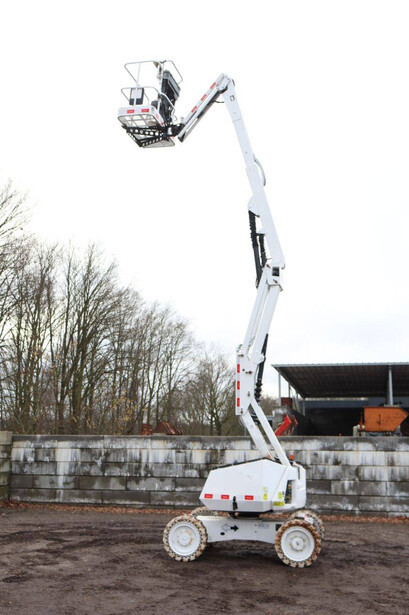 Brand: JLG Type: 340AJ Serial number: 0300155000 Year of construction: 2012 Fuel: Diesel Lifting capacity: 227 kg Working height: 12.3 m Operating hours read: 4020 h Machine weight: 4252 kg Chassis: Wheels Type: Articulated boom lift Tires: Solid tires Color: white