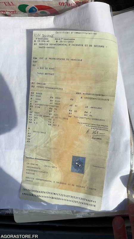 Peugeot BOXER Color: red Power: 131 Engine volume: 2198 Fuel: diesel Axle number: 2 Gearbox type: manual Overall height: 2.25 Overall length: 5.41 Overall width: 2.05 FR: Type de véhicule AMBULANCE