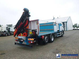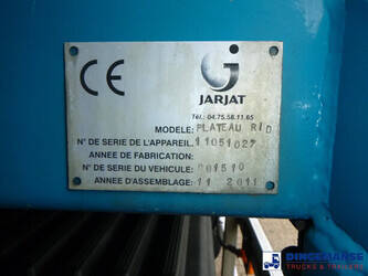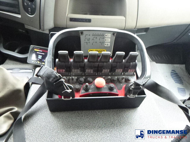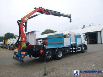 Palfinger PK 13.501K SLD loading crane, 2 Hydraulic extensions, Max. lifting capacities: 3550 kg at 3.8 m, 2400 kg at 5 m, 1700 kg at 7 m; Max. horizontal reach 7 m, Max. vertical reach approx 10.2 m, Hook + Rotator, Radio remote control, 2 Support legs, Year of manufacture 2018 , Working hours 968.4 // Truck Euro 5, AdBlue, Volvo DXI engine, Diff. lock, Manual gearbox (8 gears), Volvo Engine Brake, Steel suspension front / Air suspension rear, Dhollandia DH-LM 10 side lift, Max. capacity 1000 kg, JARJAT open box, Total internal dimensions Front open box 367x246x80 cm, Rear platform 308x246 cm, Floor height 130 cm, Low roof cabin, 1 Bed, Air conditioning, Night heater, Digital tacho, Shipment dimensions 1030x250x350 cm