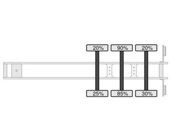 Configuration essieu Essieu arrière 1: Sculptures des pneus gauche: 25% ; Sculptures des pneus droite: 20%