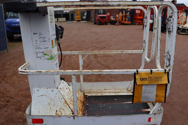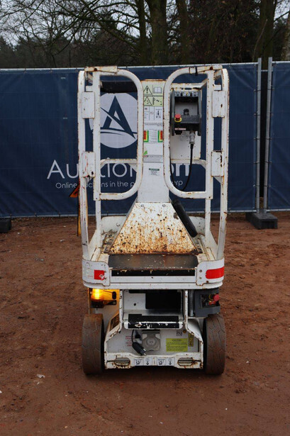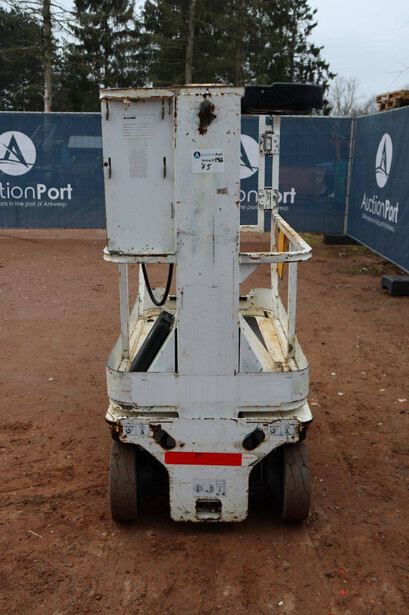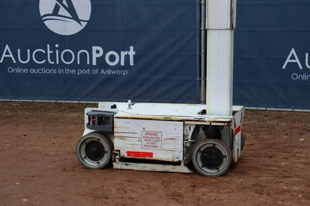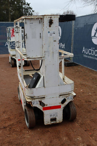 Brand: JLG Type: 1230ES Serial number: 0200216111 Year of construction: 2013 Fuel: Electric Lifting capacity: 230 kg Working height: 5.66 m Operating hours read: 455 h Machine weight: 790 kg Chassis: Wheels Type: Mast lift Tires: Non-marking tires Color: white