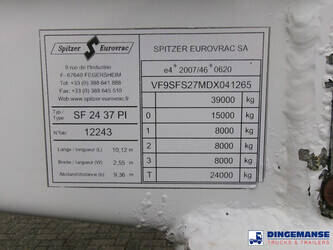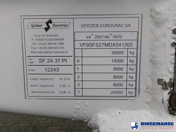 Aluminium powder tank / cement silo, Capacity 37000 litres, 1 Compartment, Test pressure 3.0 bar, Max. working pressure 2.0 bar, ABS, Air suspension, Mercedes axles, Disc brakes, Alloy wheels, Shipment dimensions 1020x250x370 cm
