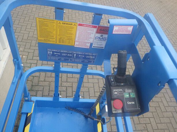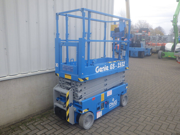 Brand: Genie Model: GS-1932 Type: Scissor lift Serial number: GS3014C-16026 Year of construction: 2014 Operating hours read: 319h Fuel: Electric battery Working height: 7.8m Lifting capacity: 227kg Machine weight: 1498kg Wheels: non-marking tires Drive: 24V