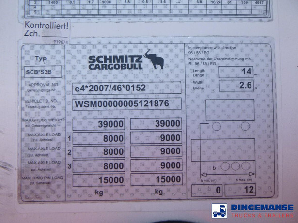 NON-DUTY FREE VEHICLE, REQUIRES CUSTOMS CLEARANCE // Carrier Vector 1350 diesel + electric frigo engine, Insulated closed box, 7780 working hours, Ticket machine, Box dimensions 1340x250x260 cm, Floor height 130 cm, ABS, Air suspension, Schmitz axles, Disc brakes, Tyres 385/65R22.5, Shipment dimensions 1370x250x400 cm.