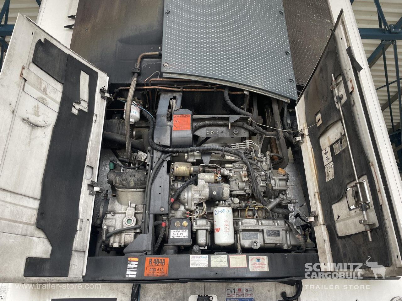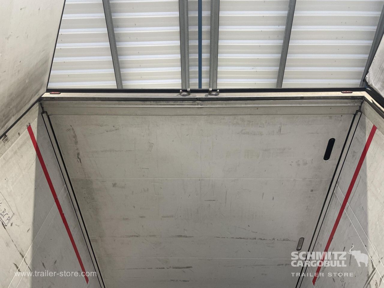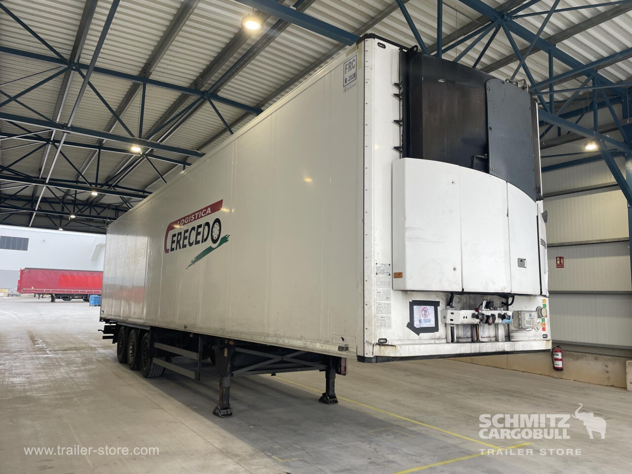 Remarks: **Safety**\\Rear underrun, Antilock Braking System ABS, Fire extinguisher holder\\\\**Interior**\\Temperature recorder\\\\**Exterior**\\Air suspension, Bolted chassis, Gantry doors, 1x15 and 2x7 pin plug, Antispray\\\\**Cargo securing**\\Load securing rail\\\\**Brake system**\\Disc brake, Schmitz ROTOS\\\\**Floor**\\Aluminum floor\\\\**Wand**\\Stirnwand verstärkt\\\\**Wall**\\Frontwall recess for cooling\\\\**Cooling unit**\\Thermoking SLX E 200, Diesel/Elektro\\\\**Loading area**\\Length 13.410 mm, Width 2.460 mm, Height 2.700 mm, Volume 89 m³\\\\**Tyre sizes**\\1. Achse: 385/55 R22.5 , Tread depth: 2 mm / 2 mm, 2. Achse: 385/55 R22.5 , Tread depth: 2 mm / 2 mm, 3. Achse: 385/55 R22.5 , Tread depth: 2 mm\\\\**Other dimensions and weights**\\GVW: 35.000 kg\\\\----
