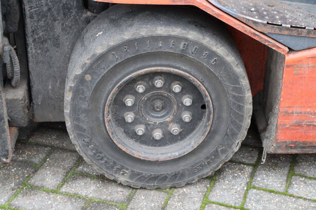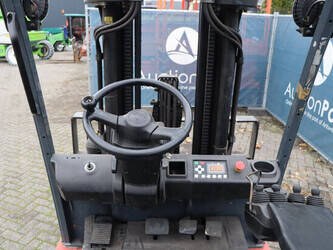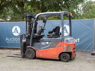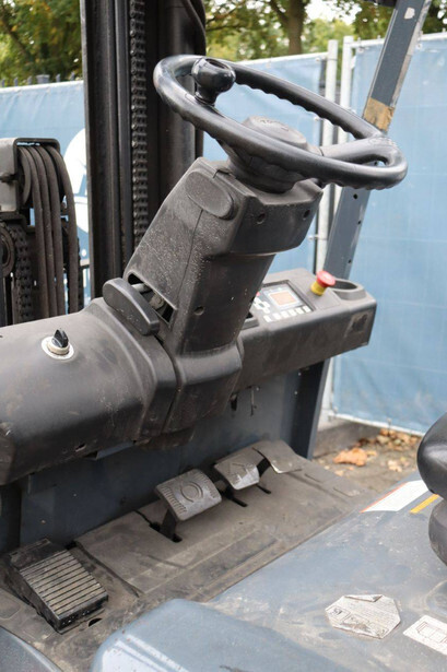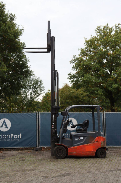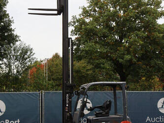 Brand: Toyota Type: 8FBMT30 Serial number: VER1286882SR1R Year of construction: 2014 Fuel: Electric Mast type: Triplex Sideshift: Yes Lifting capacity: 3000 kg Lifting height: 4700 mm Operating hours read: 22773 h Machine weight: 5161 kg Tires: Solid tires Color: red