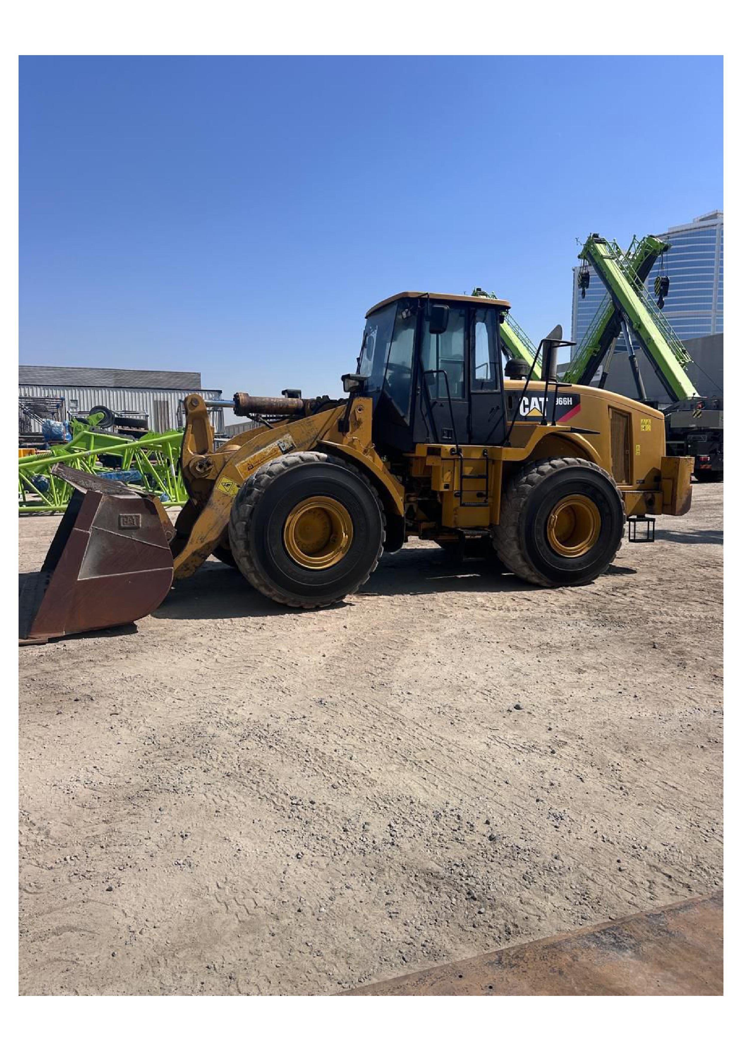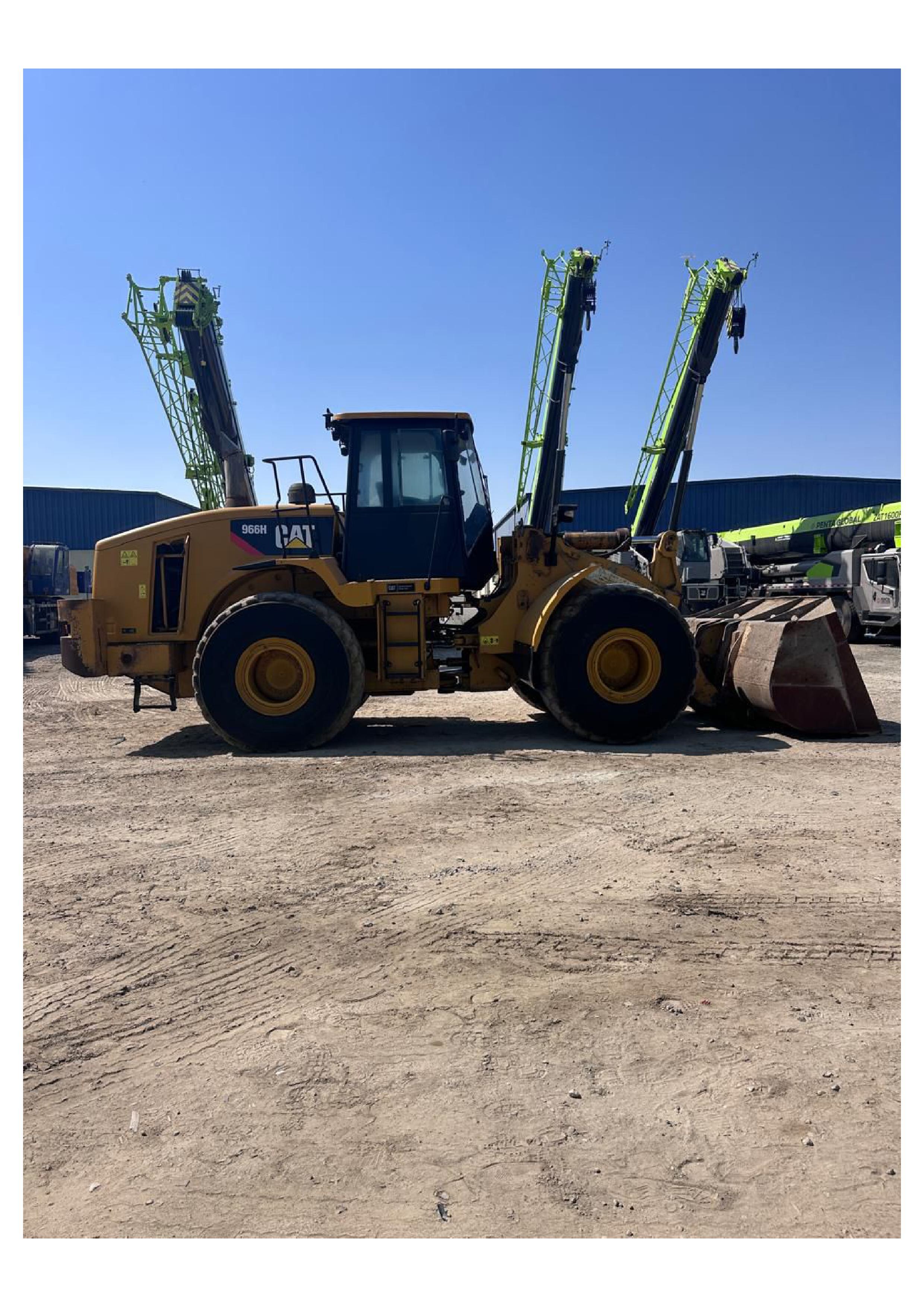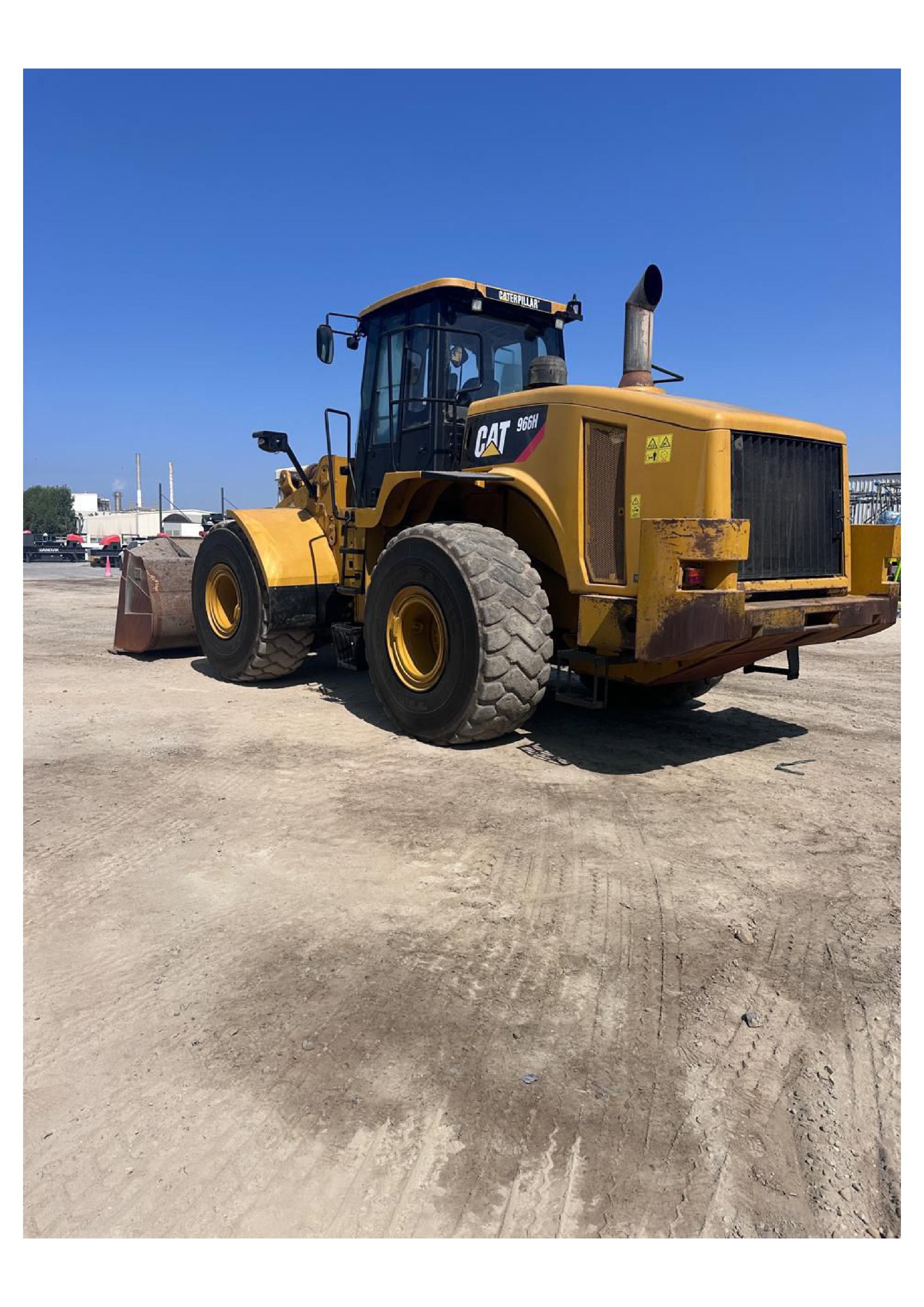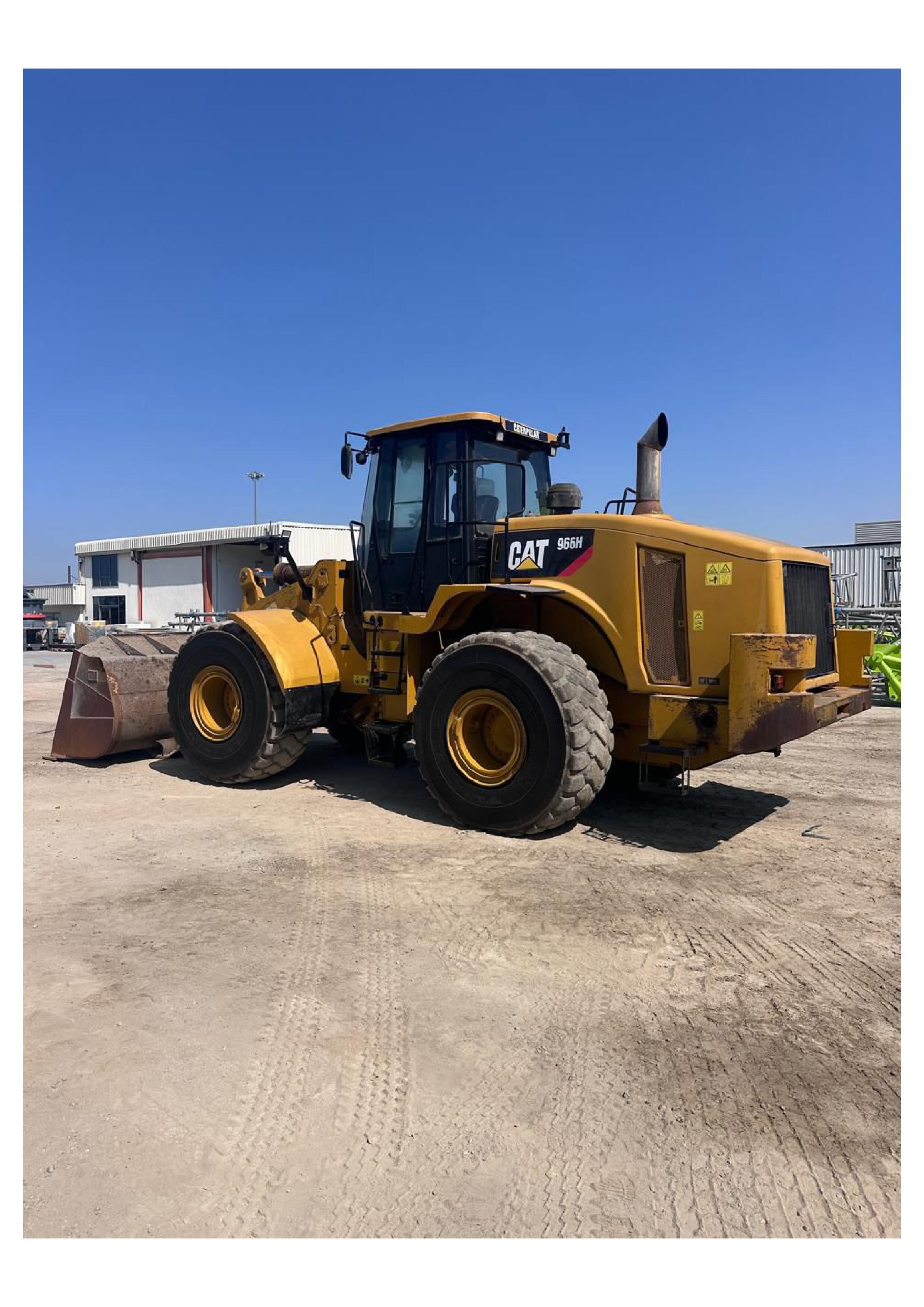 Powered by a Cat C11 ACERT engine, the 966H produces approximately 262 HP, offering strong breakout force and smooth hydraulic operation. The machine features a robust powershift transmission, load-sensing hydraulics, and a comfortable ROPS/FOPS certified operator cabin for enhanced productivity and safety.