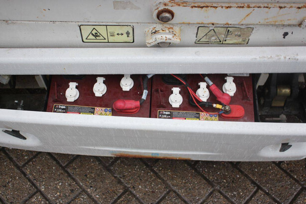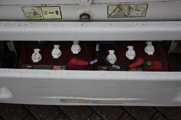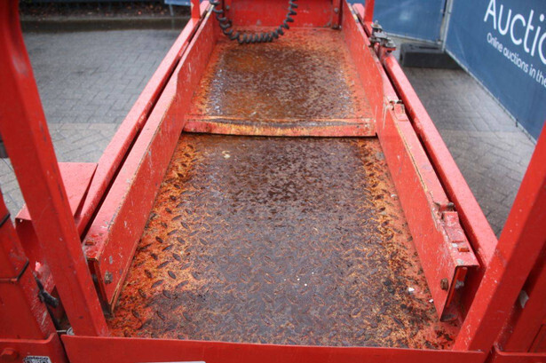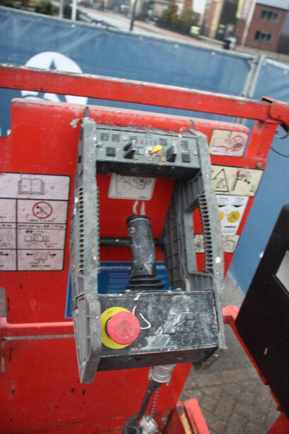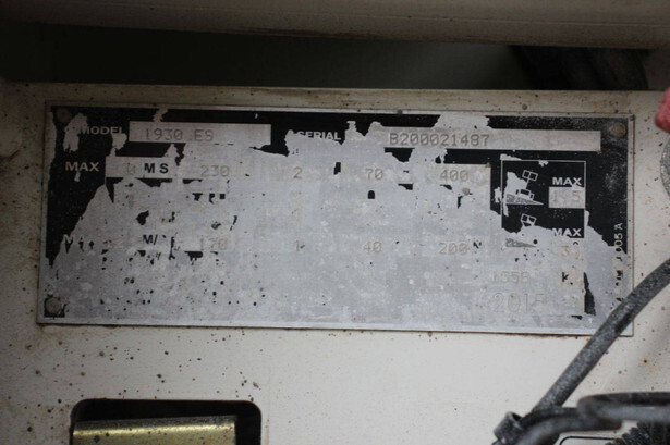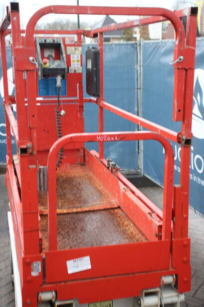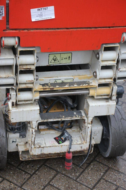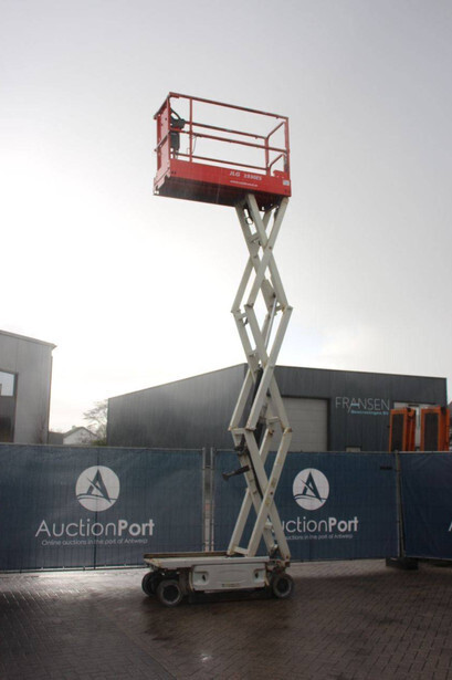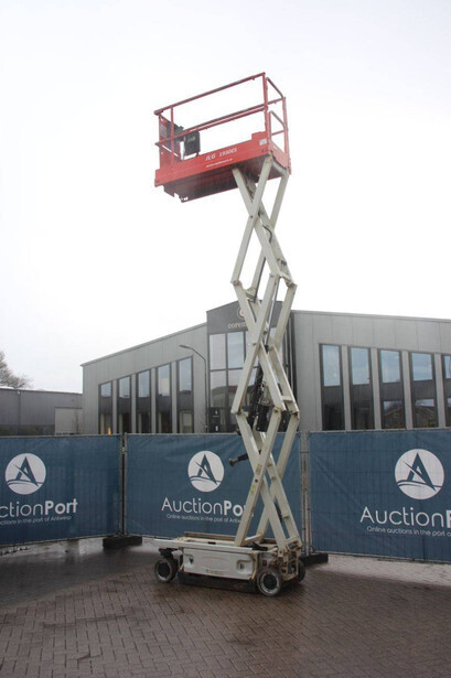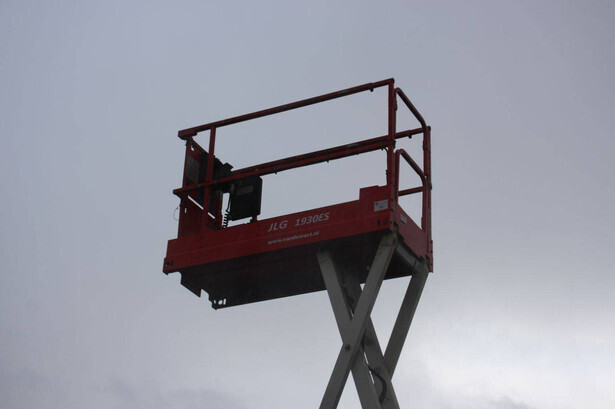 Brand: JLG Type: 1930ES Serial number: B200021487 Year of construction: 2015 Fuel: Electric Lifting capacity: 230 kg Working height: 7.72 m Recorded operating hours: 145 hours Machine weight: 1558 kg Undercarriage: Wheels Type: Scissor lift Tires: Non-marking tires Color: red