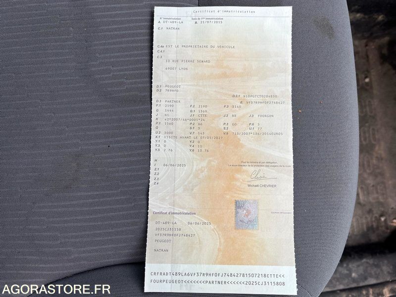 Peugeot PARTNER Power: 90 Engine volume: 1560 Fuel: gas Axle 1 common tyre size: 195/70R16 Gearbox type: manual Overall height: 1.81 Overall length: 4.63 Overall width: 1.81 FR: Type de véhicule FOURGONNETTE Nb portes: 4 Etat carrosserie: Bon Etat intérieur: À nettoyer Etat des pneus: Bon AVG/AVD/ARD/ARG 6,1/6,2/6,7/7,5mm Transmission: AVANT Etat soubassements: Ok Véhicule roulant Moteur tournant Un rapport d'inventaire est fourni dans la rubrique « documents » Ref No:AG49456 VIN: VF37R9HF0FJ748427