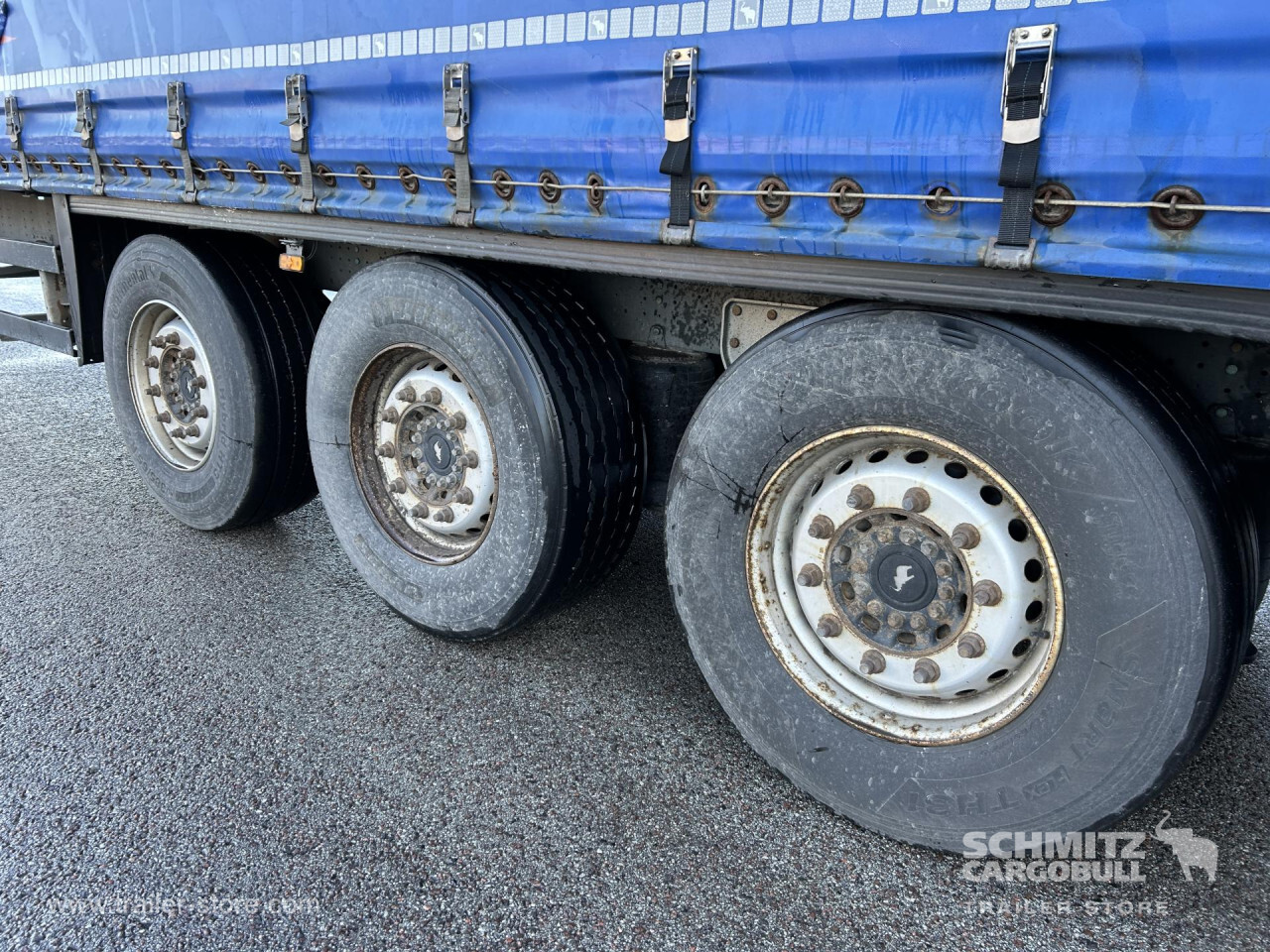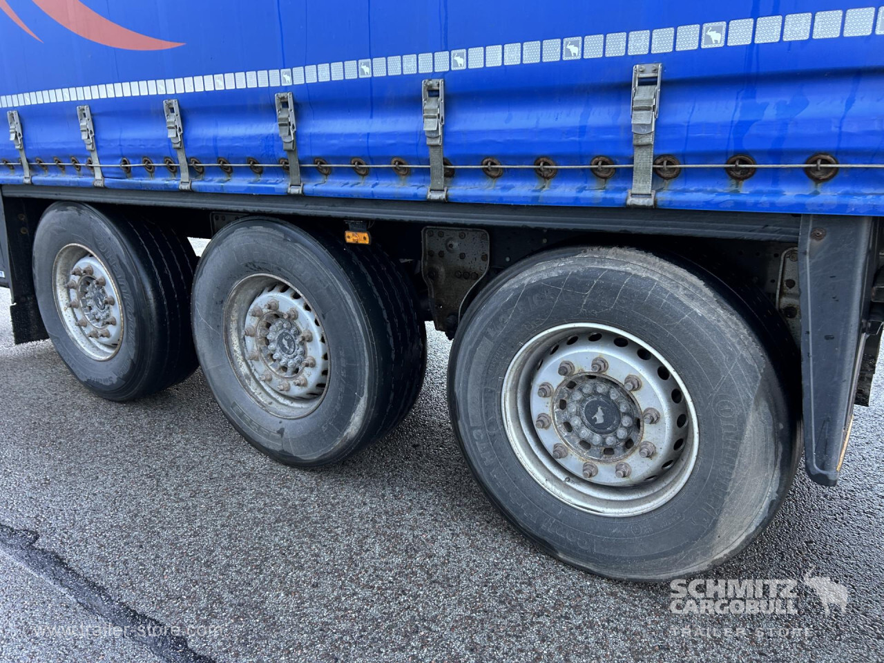 Remarks: **Safety**\\Rear underrun, Antilock Braking System ABS\\\\**Exterior**\\Air suspension, Toolbox, Spare wheel carrier, Ferry lashings, 1x15 and 2x7 pin plug, Antispray\\\\**Brake system**\\Disc brake, Schmitz ROTOS\\\\**Loading area**\\Length 13.620 mm, Width 2.480 mm, Height 2.700 mm, Volume 91 m³\\\\**Tyre sizes**\\ 385/65 R22.5 , 385/65 R22.5 , 385/65 R22.5\\\\**Other dimensions and weights**\\Payload: 32.203 kg, GVW: 39.000 kg, Wheel base: 7.700 mm\\\\----