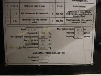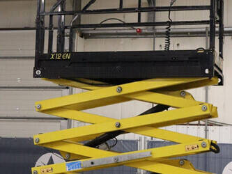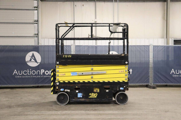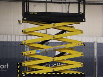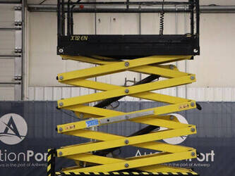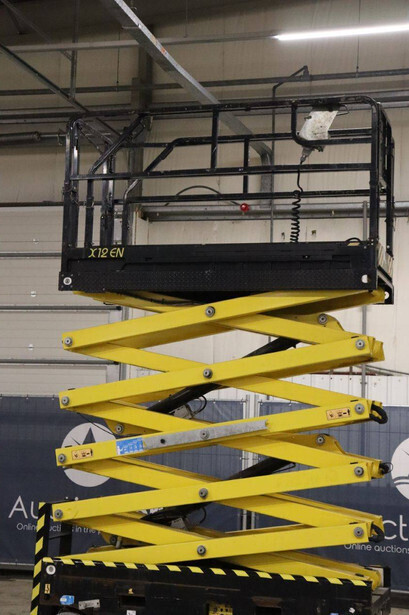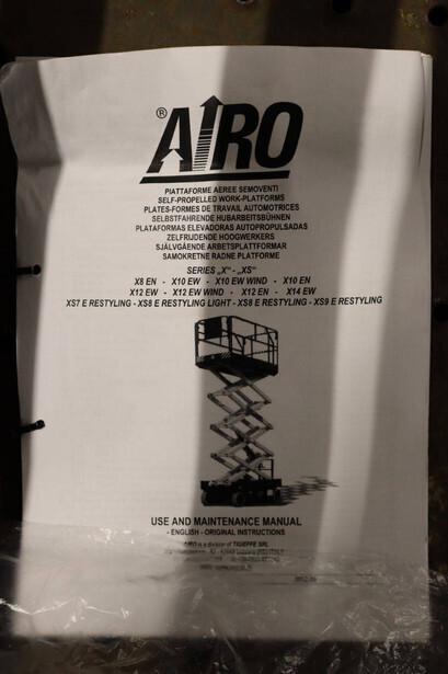Brand: Airo Type: X12 EN Serial number: SF225744 Year of construction: 2016 Fuel: Electric Lifting capacity: 300 kg Working height: 12.1 m Operating hours read: 507 h Chassis: Wheels Type: Scissor lift Tires: Non-marking tires Color: yellow