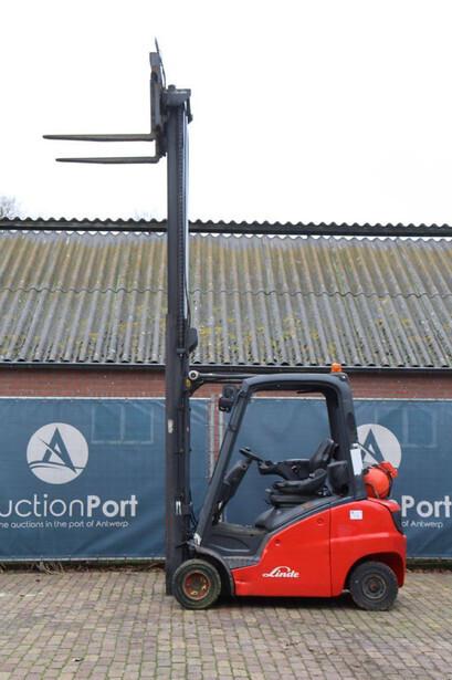 Brand: Linde Type: H20T-01 Serial number: H2X391G50688 Year of construction: 2016 Fuel: LPG Mast type: Duplex Sideshift: Yes Lifting capacity: 2000 kg Lifting height: 6800 mm Operating hours read: 17618 h Machine weight: 3390 kg Tires: Solid tires Color: red