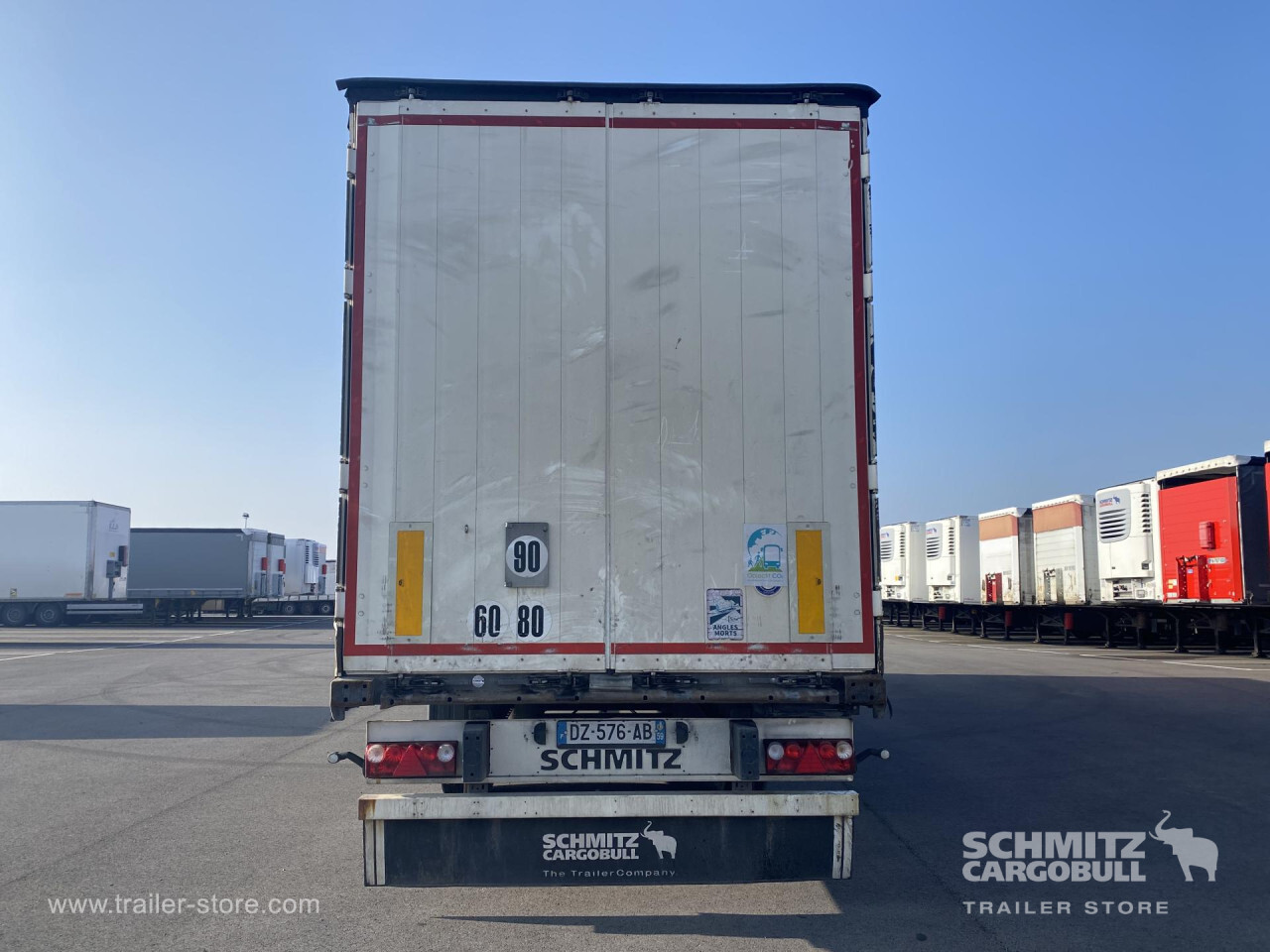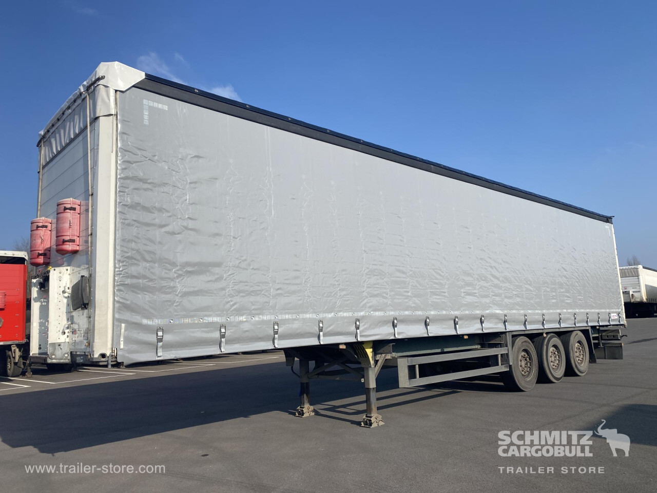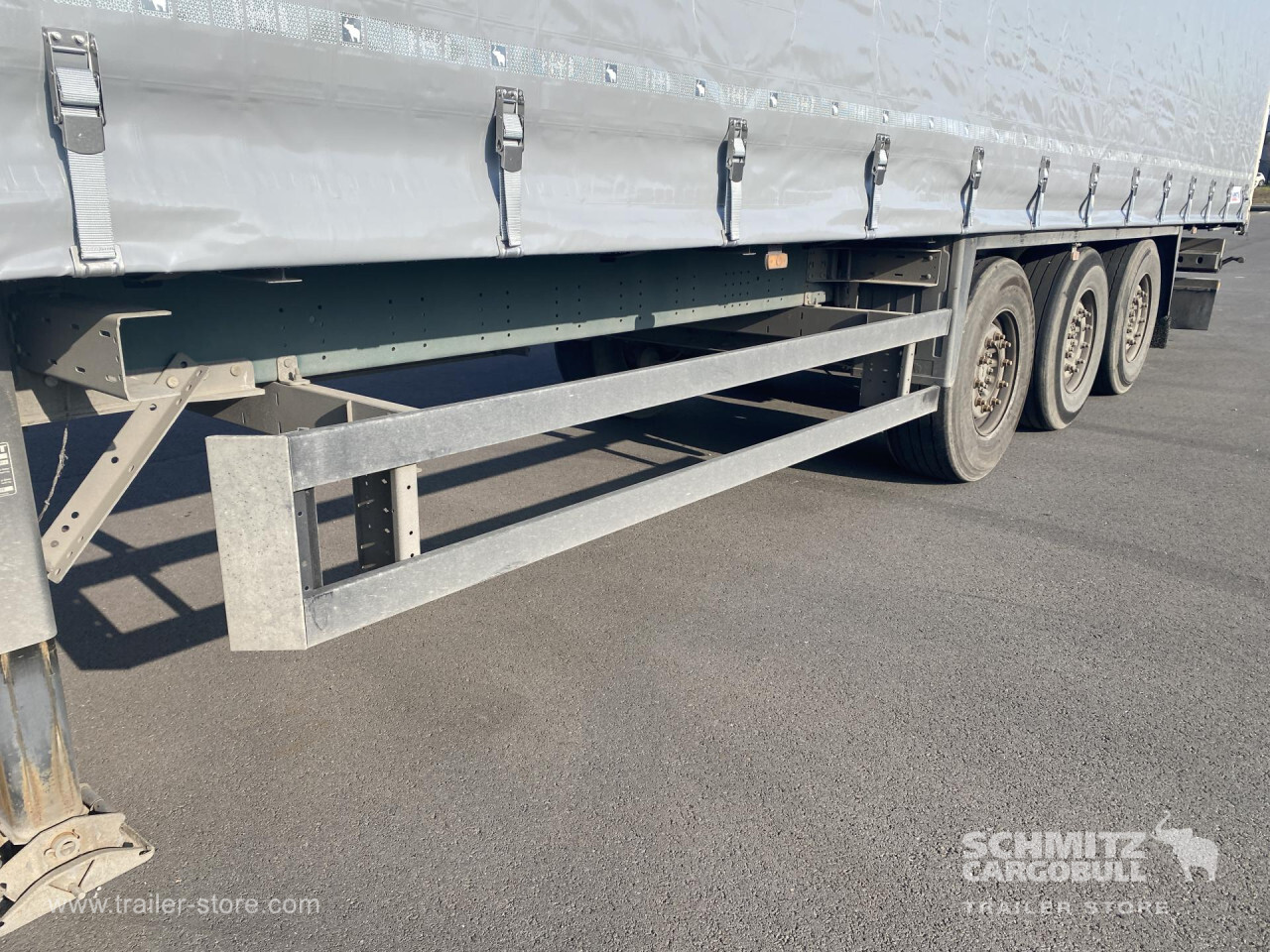 Remarks: **Safety**\\Rear underrun, Antilock Braking System ABS, Fire extinguisher holder, Hubodometer\\\\**Exterior**\\Air suspension, Toolbox, Bolted chassis, Sliding roof, 1x15 and 2x7 pin plug, Antispray\\\\**Cargo securing**\\Cargo securing with certificate, DIN EN 12642 (code XL) certificate, Punched load securing side rave, Wooden - support slats\\\\**Brake system**\\Disc brake, Schmitz ROTOS\\\\**Floor**\\Wooden floor, Lashing rings in floor\\\\**Loading area**\\Length 13.620 mm, Width 2.480 mm, Height 2.780 mm, Volume 91 m³\\\\**Tyre sizes**\\1. Achse: 385/65 R22.5 , Tread depth: 4 mm / 8 mm, 2. Achse: 385/65 R22.5 , Tread depth: 7 mm / 7 mm, 3. Achse: 385/65 R22.5 , Tread depth: 4 mm / 4 mm\\\\**Other dimensions and weights**\\Payload: 31.401 kg, GVW: 38.000 kg\\\\----