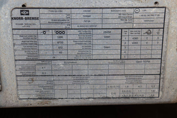 Semi-Low Loader Brand: Veldhuizen Type: P47-2A Chassis number: XL9KSG15111070157 Year of construction: 2016 MTM: 9000 kg Number of axles: 2 Brakes: Drum brakes