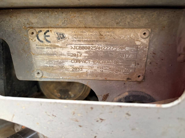 Brand: JCB Type: 8025 Serial number: JCB08025AH2227590 Year of construction: 2017 Fuel: Diesel Quick change: No Operating hours read: 3207 h Machine weight: 2855 kg Running gear: Tracks Color: red