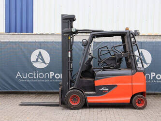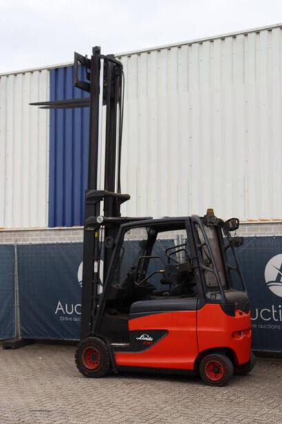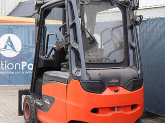 Brand: Linde Type: E30HL-01/600 Serial number: H2X387H01255 Year of construction: 2017 Fuel: Electric Mast type: Duplex Sideshift: No Lifting capacity: 3000 kg Operating hours read: 12742 h Machine weight: 3665 kg Tires: Solid tires Color: red