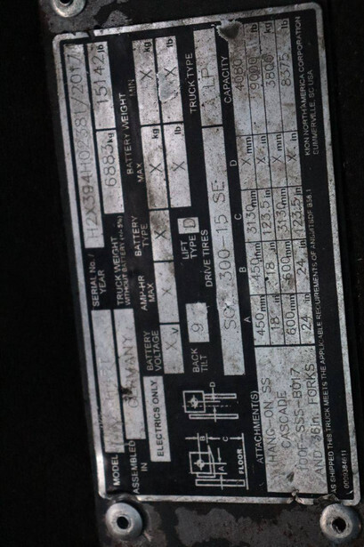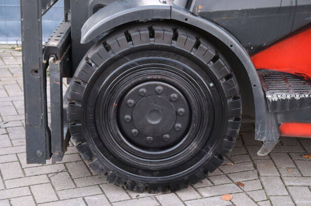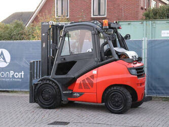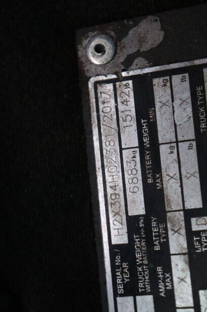 Brand: Linde Type: H45T Serial number: H2X394H02381 Year of construction: 2017 Fuel: LPG Mast type: Duplex Sideshift: Yes Lifting capacity: 4080 kg Lifting height: 3130 mm Operating hours read: 10895 h Machine weight: 6883 kg Tires: Solid tires Color: red