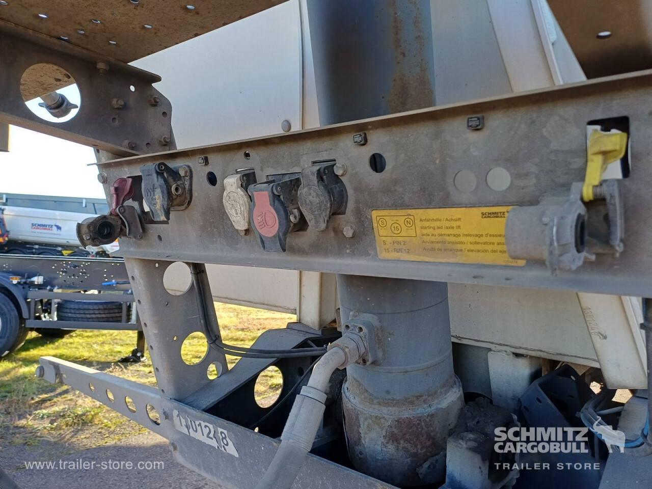 Remarks: **Safety**\\Hinged rear underrun, Antilock Braking System ABS\\\\**Exterior**\\Air suspension, Lift axle front, Exterior pendulum tailgate, Roof rolling tarpaulin, Access platform, 1x15 and 2x7 pin plug, Antispray, Light alloy rims\\\\**Brake system**\\Disc brake, Schmitz ROTOS\\\\**Loading area**\\Length 7.500 mm, Width 2.440 mm, Height 1.350 mm, Volume 24 m³\\\\**Tyre sizes**\\1. Achse: 385/65 R22.5 , Tread depth: 7 mm / 9 mm, 2. Achse: 385/65 R22.5 , Tread depth: 12 mm / 11 mm, 3. Achse: 385/65 R22.5 , Tread depth: 12 mm / 11 mm\\\\**Other dimensions and weights**\\GVW: 36.000 kg\\\\----