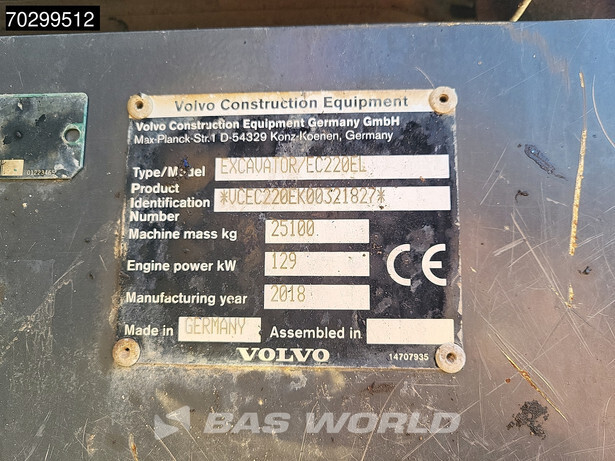 احصل على تقرير فحص مفصل لـ 2018 فولفو EC220EL واشتري المعدات براحة بال تامة.