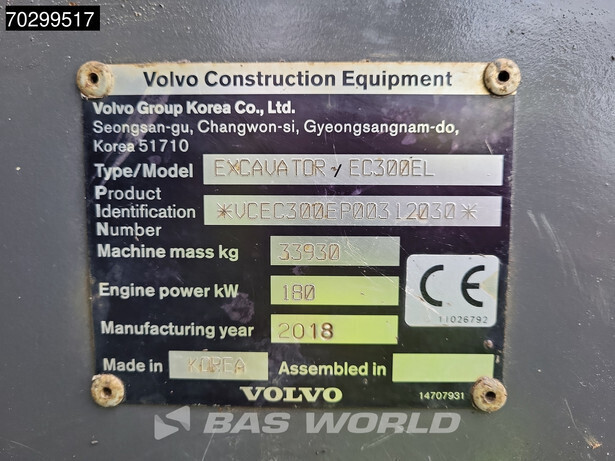 احصل على تقرير فحص مفصل لـ 2018 فولفو EC300EL واشتري المعدات براحة بال تامة.