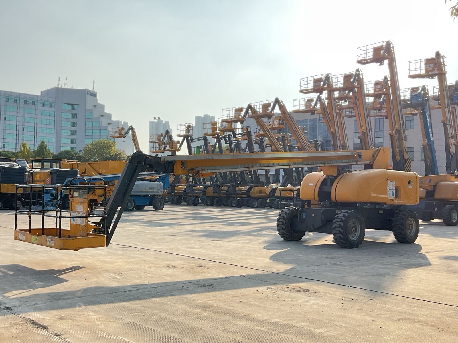 The straight boom aerial work platform at the elevation of 26 meters developed by XCMG is self-equipped with a small sized fly jib, thus having a certain capacity in obstacle crossing, and being stretchable to any inaccessible position; the double-load control system may automatically adjust the operating radius as the loads may be, which will satisfy the different demands of the users on different loads. It is an ideal choice for users engaged in building construction, bridges, steel structures and installation & construction both inside and outside the venue.