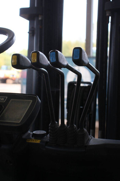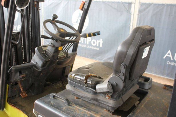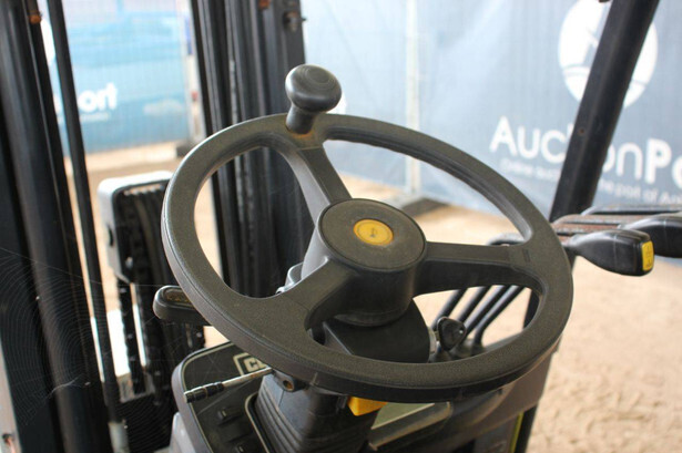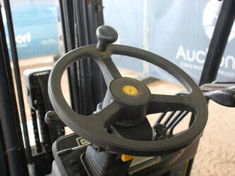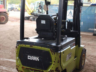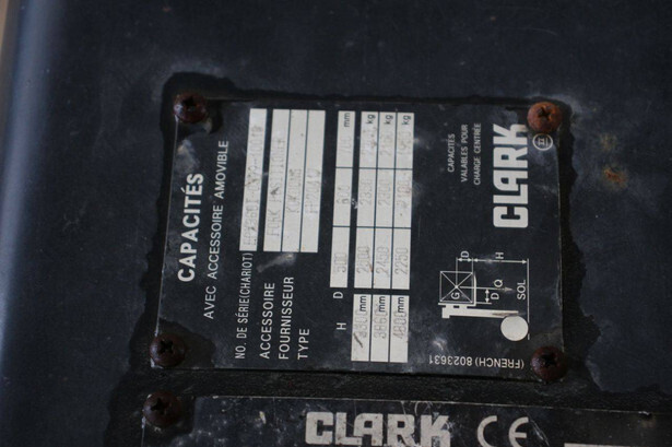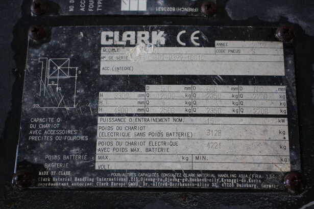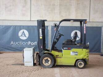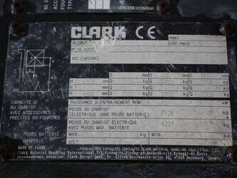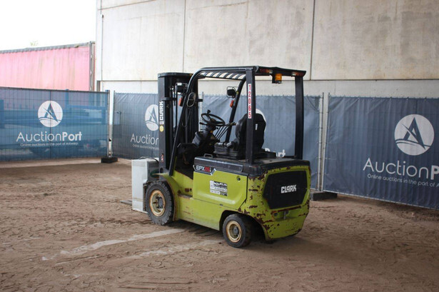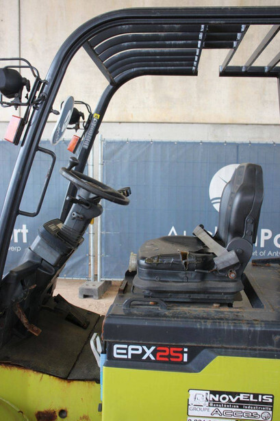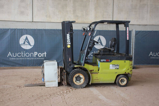 Brand: Clark Type: EPX25i Serial number: EPX3601039910010 Year of construction: 2019 Fuel: Electric Mast type: Triplex Sideshift: No Lifting capacity: 2500 kg Lifting height: 4300 mm Machine weight: 4221 kg Tires: Solid tires Color: green