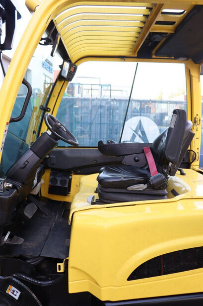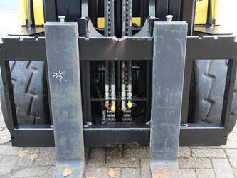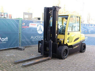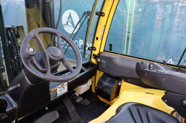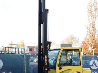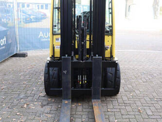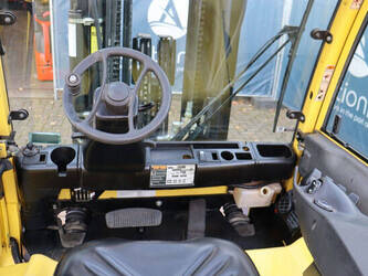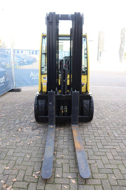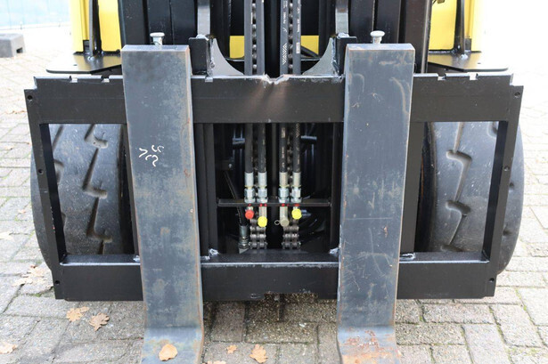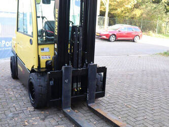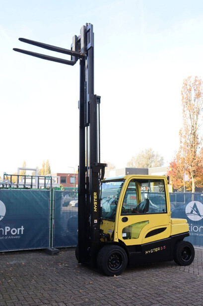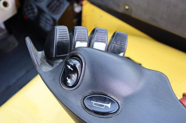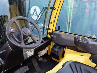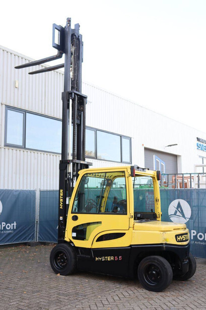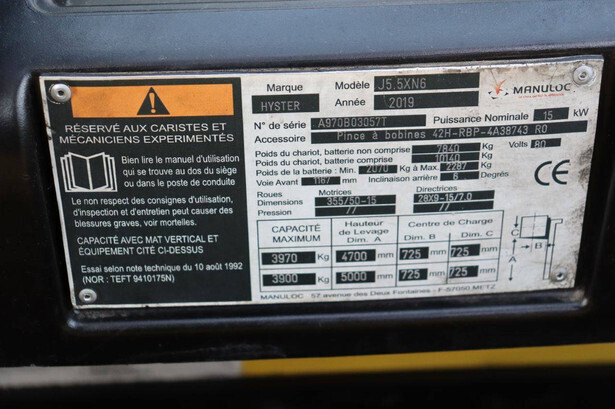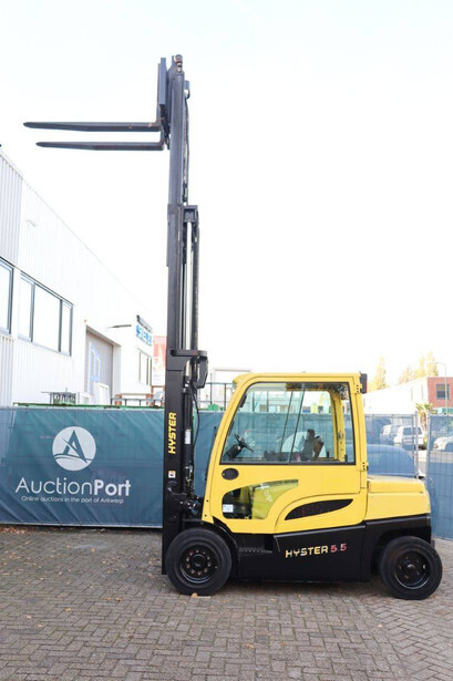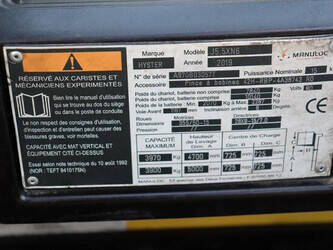 Brand: Hyster Type: J5.5XN6 Serial number: A970B03057T Year of construction: 2019 Fuel: Electric Mast type: Triplex Sideshift: No Lifting capacity: 3970 kg Lifting height: 5000 mm Operating hours read: 10104 h Machine weight: 10140 kg Tires: Solid tires Color: yellow