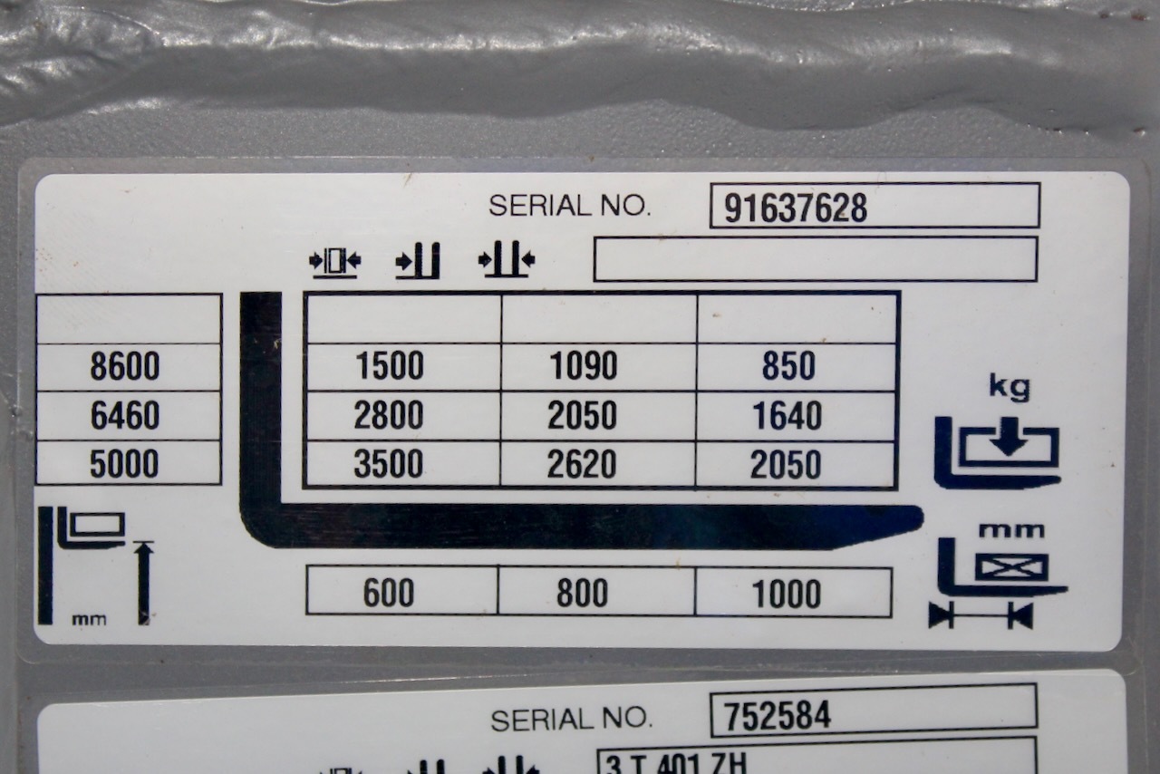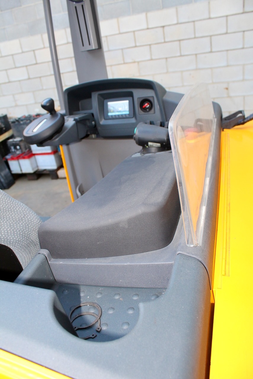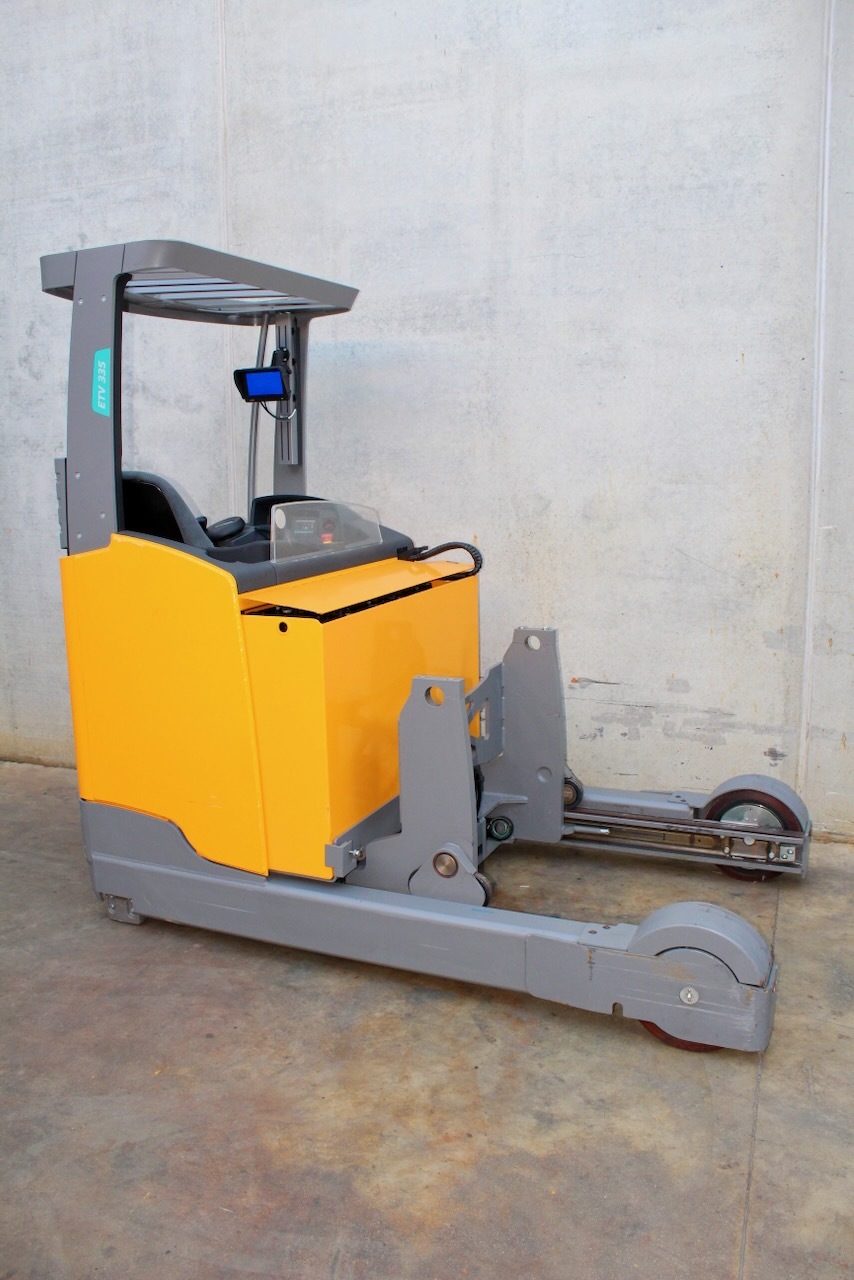 Jungheinrich ETV 335 860 DZ Load capacity: 3.500 Kg Lifting height: 8.600 mm Mast: Triplex Fork: 1.600 mm Build height: 3.830 mm Motorization: Electric Battery: No Charger: 48 v Very Good condition, WITHOUT BATTERY (Optional New battery 48v/930Ah +4.800€), Forks positioner with side-shift (Max width 1850mm, min 550mm)